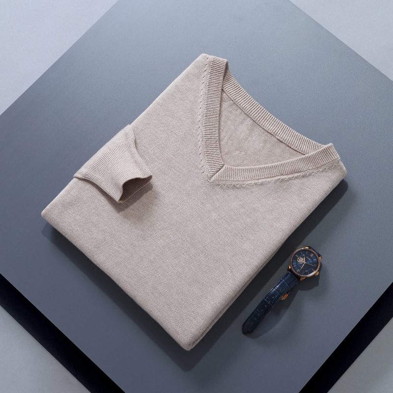 2020秋冬韩版羊毛男V领纯色鸡心领打底针织衫大码套头毛衣