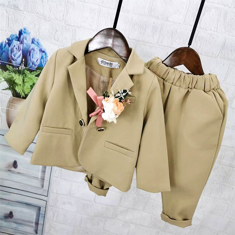 • 0023 카키 투피스 슈트 (핑크색 꽃 포함)