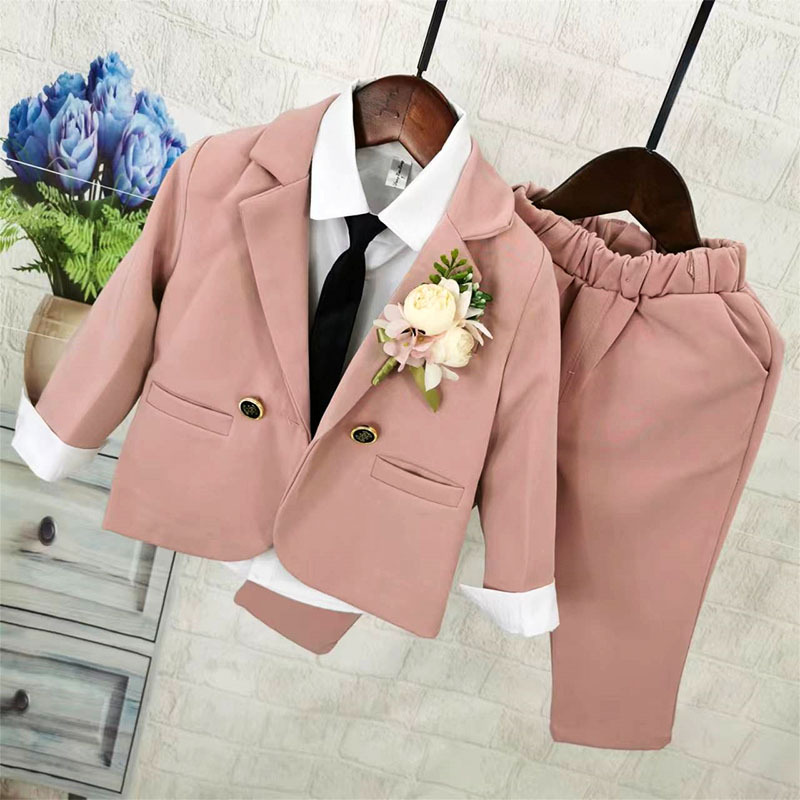 어린이 세트 2024 가을 세트 새 소년 한국 캐주얼 원피스 3 피스 세트 아기 생일스토어 가기