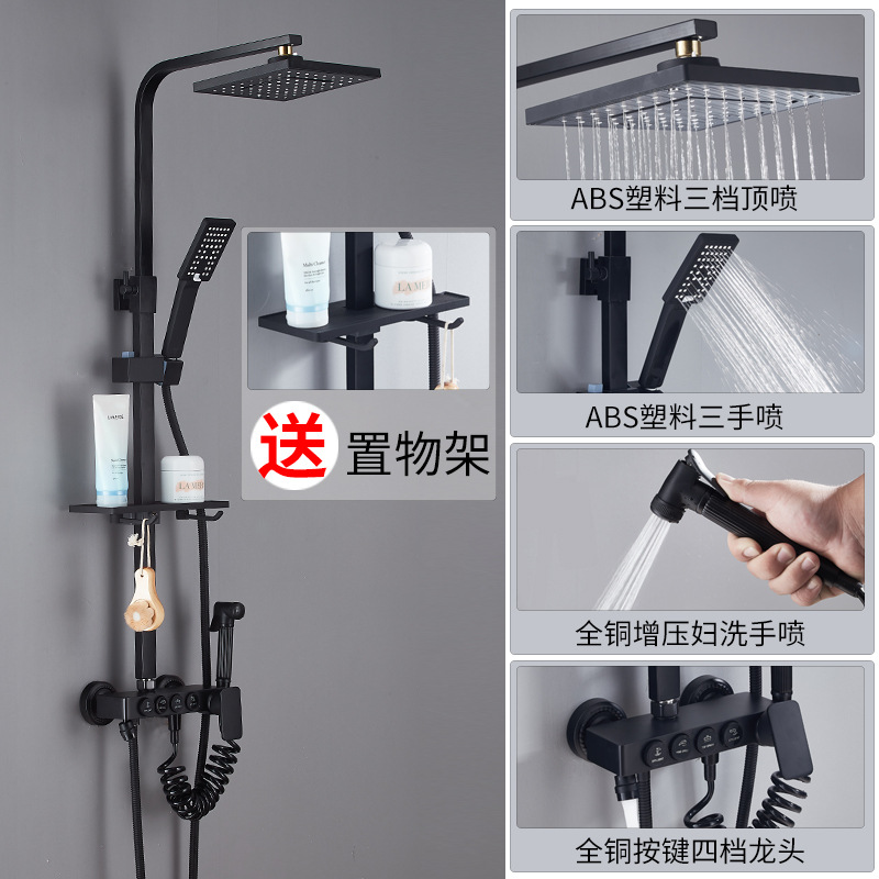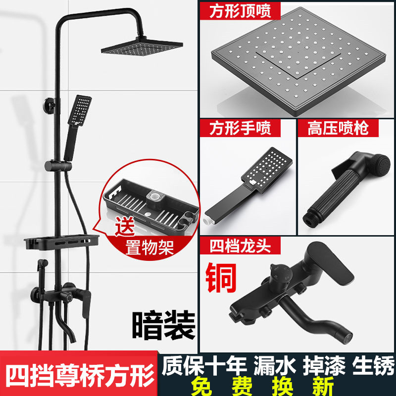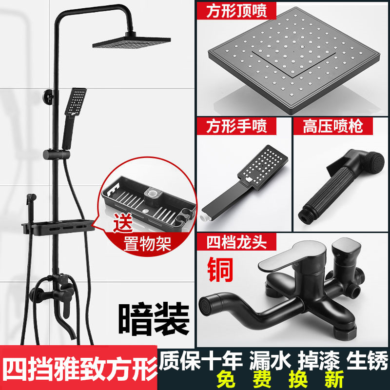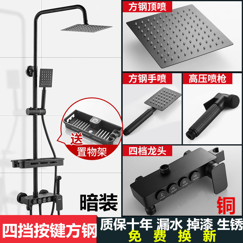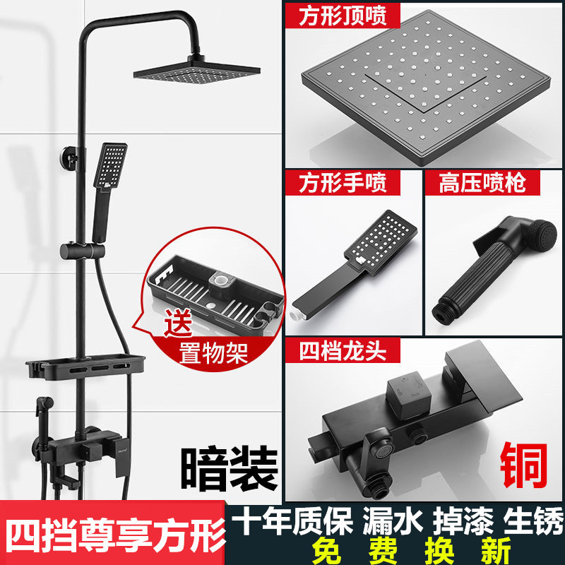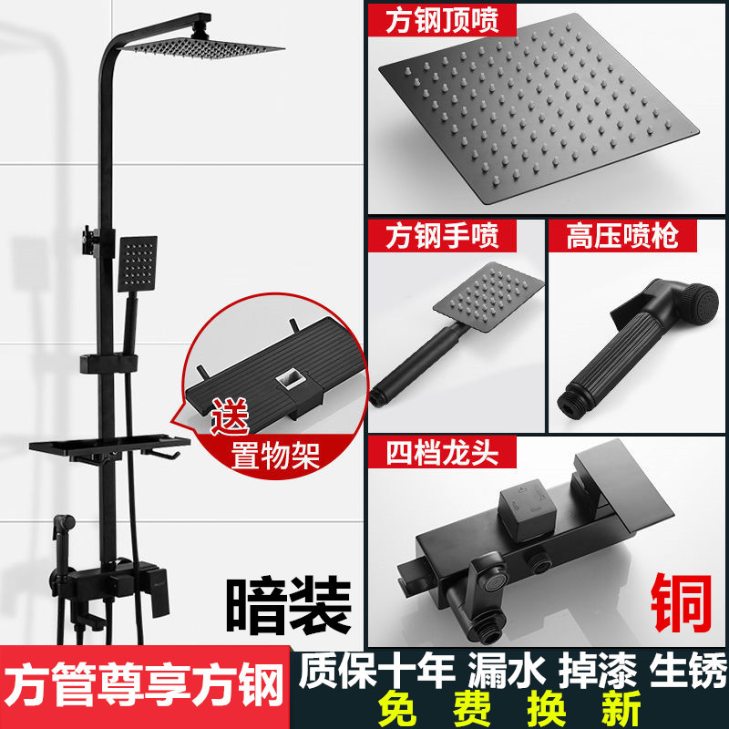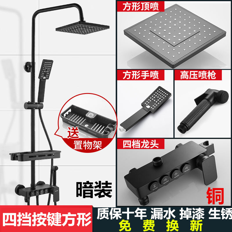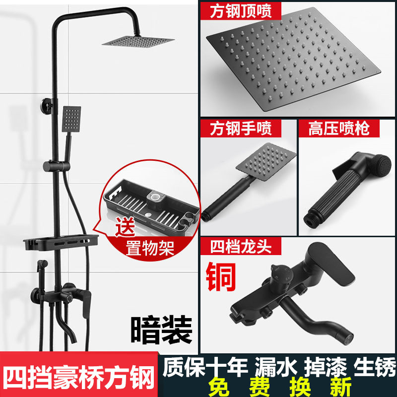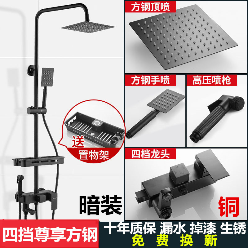 • [유니파이드 올 블랙] 초두께 구리 4 단 샤크 스퀘어 고압 스프레이 트레이