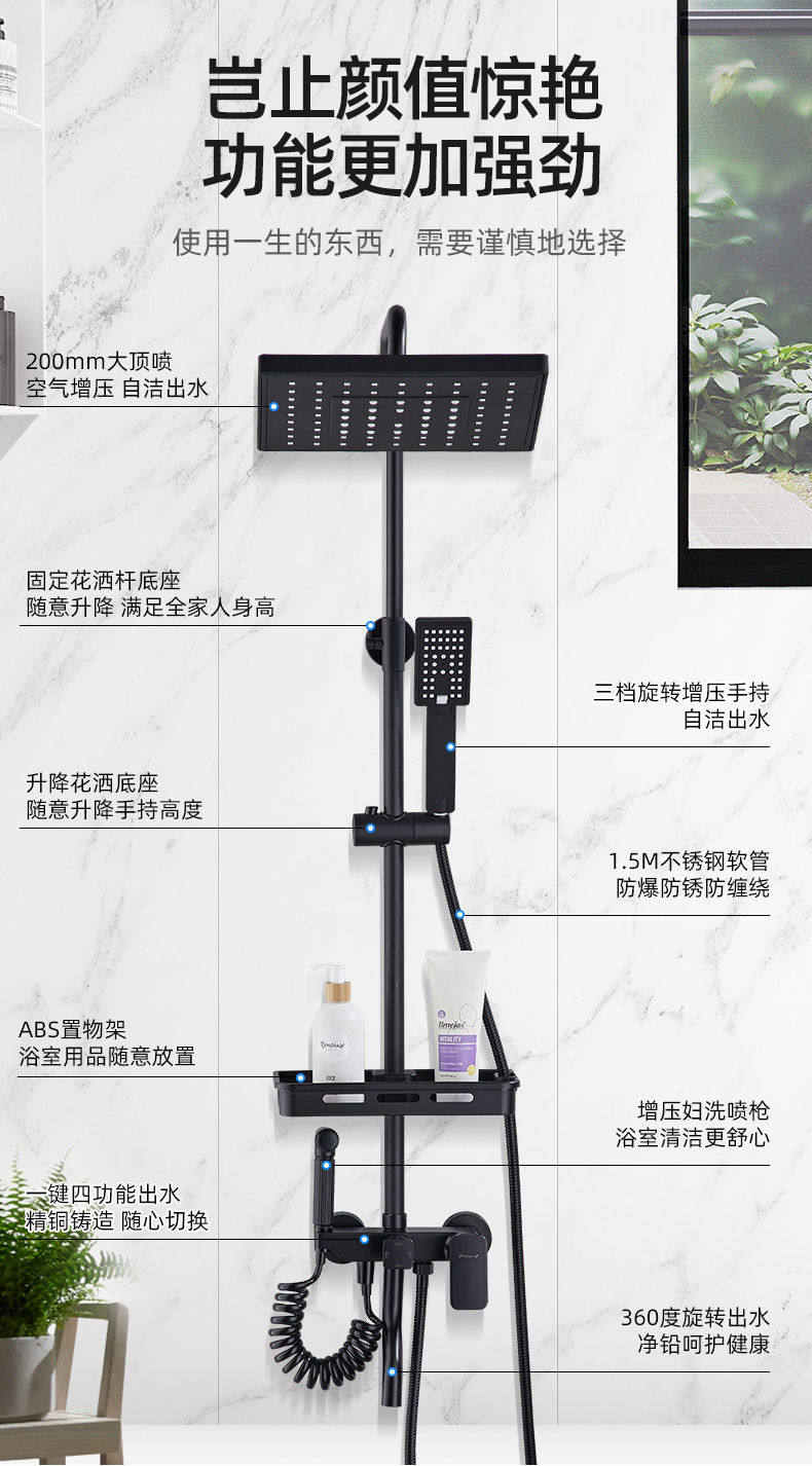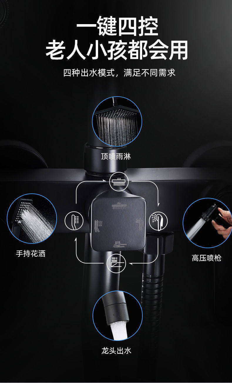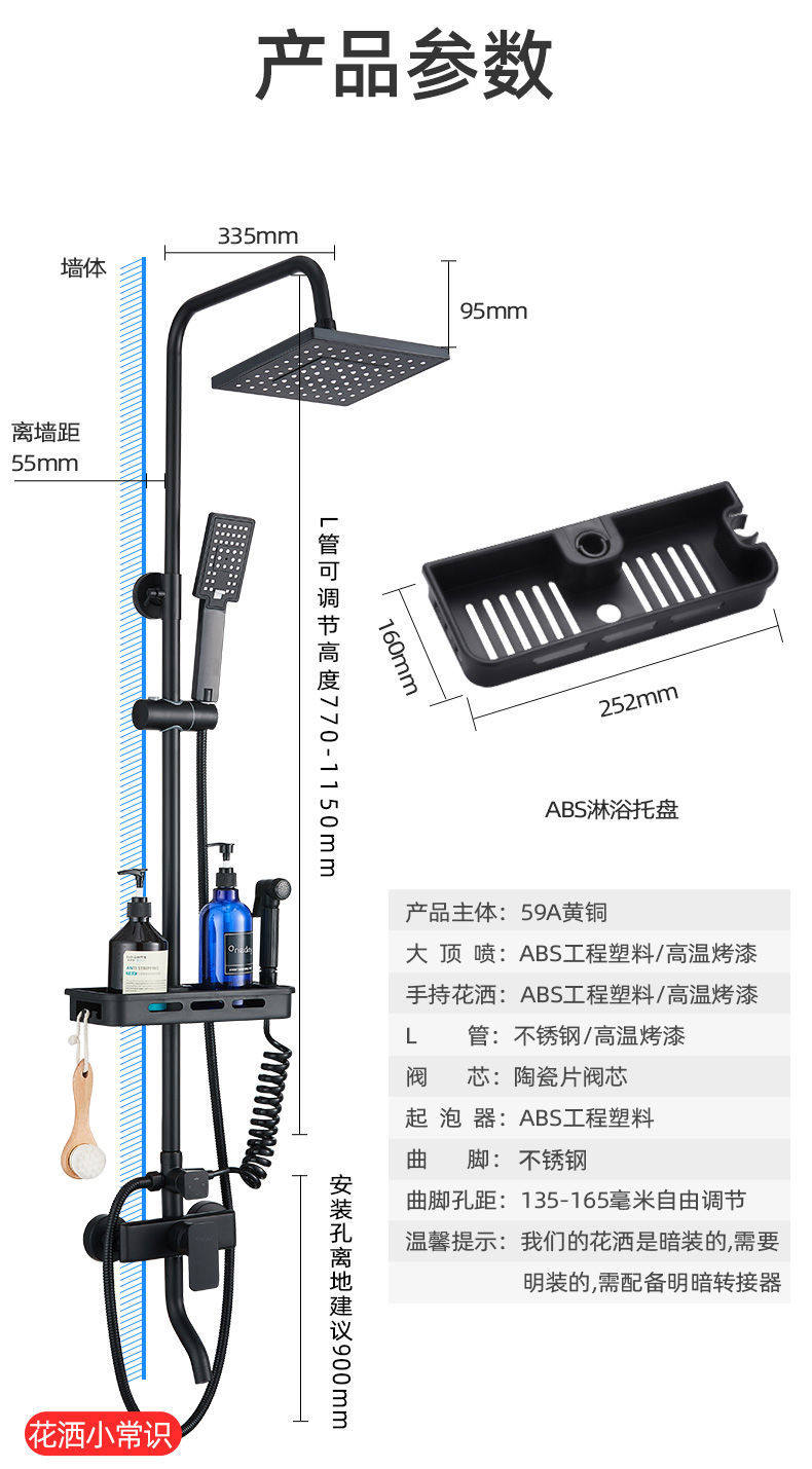 샤워기 온도조절 디지털 디스플레이 샤워 세트 가정용 블랙 샤워 수도꼭지 고압 분사 노즐 라이트 럭셔리 스타일