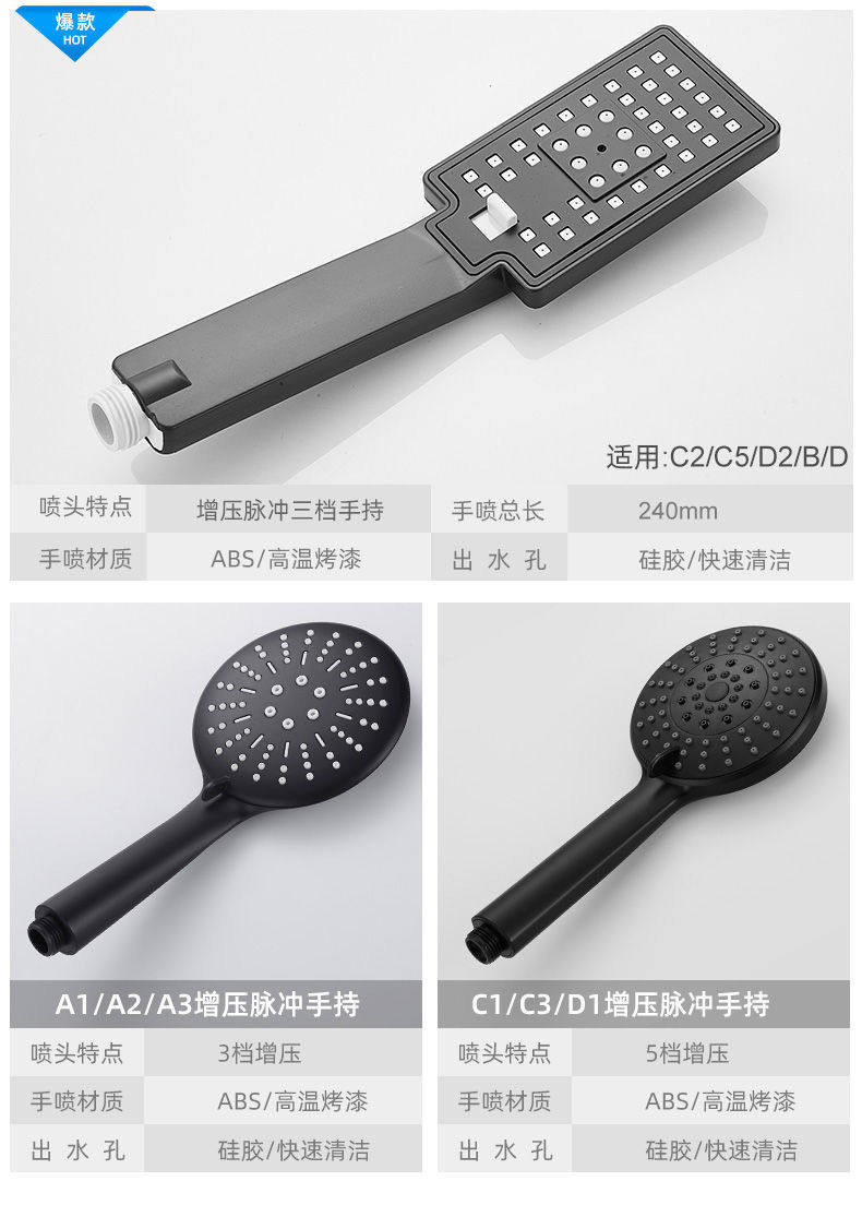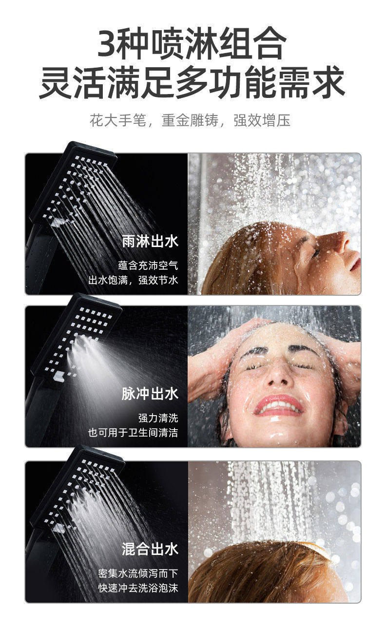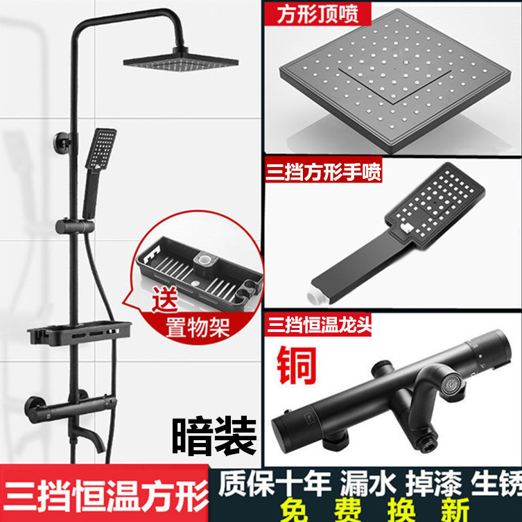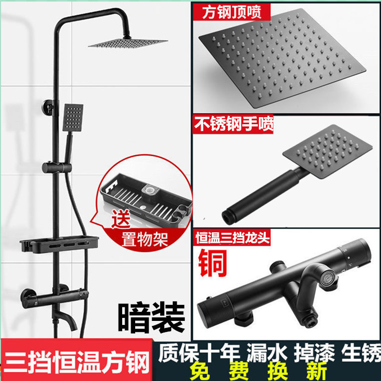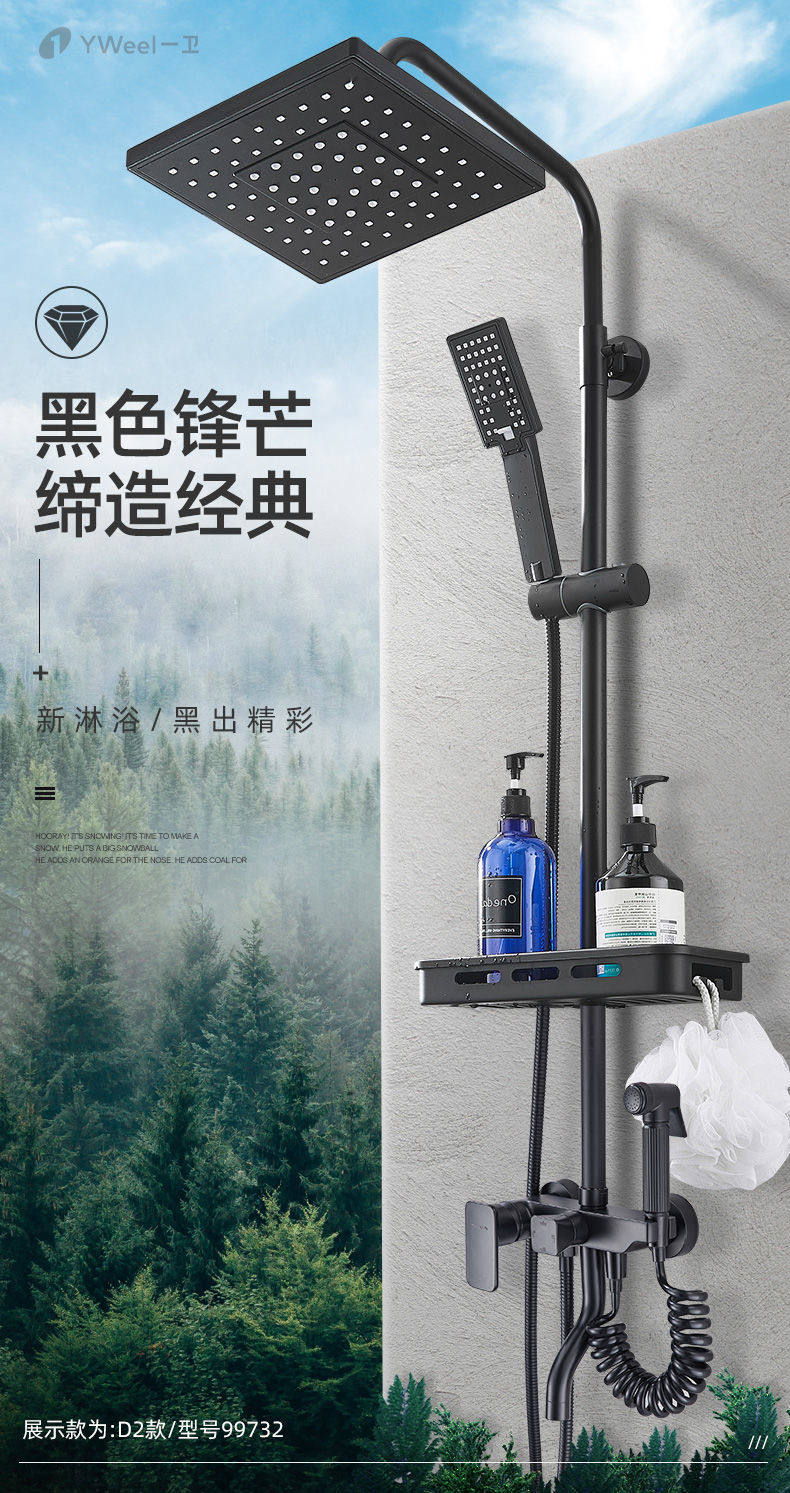 샤워기 온도조절 디지털 디스플레이 샤워 세트 가정용 블랙 샤워 수도꼭지 고압 분사 노즐 라이트 럭셔리 스타일