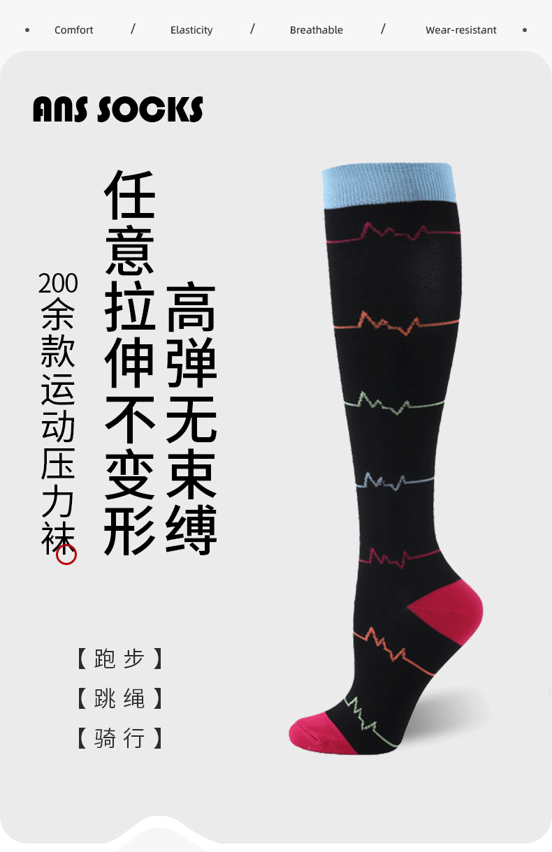 남성과 여성을 위한 엄선된 국경 간 야외 스포츠 압축 양말, 다채로운 달리기 탄성 종아리 보호 스타킹, 사이클링 압축 양말
