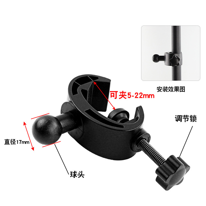 휴대 전화 태블릿 삼각대 라이브 비디오 촬영 증가 위치 원형 튜브 확장 범용 회전 C 클립 17mm 헤드