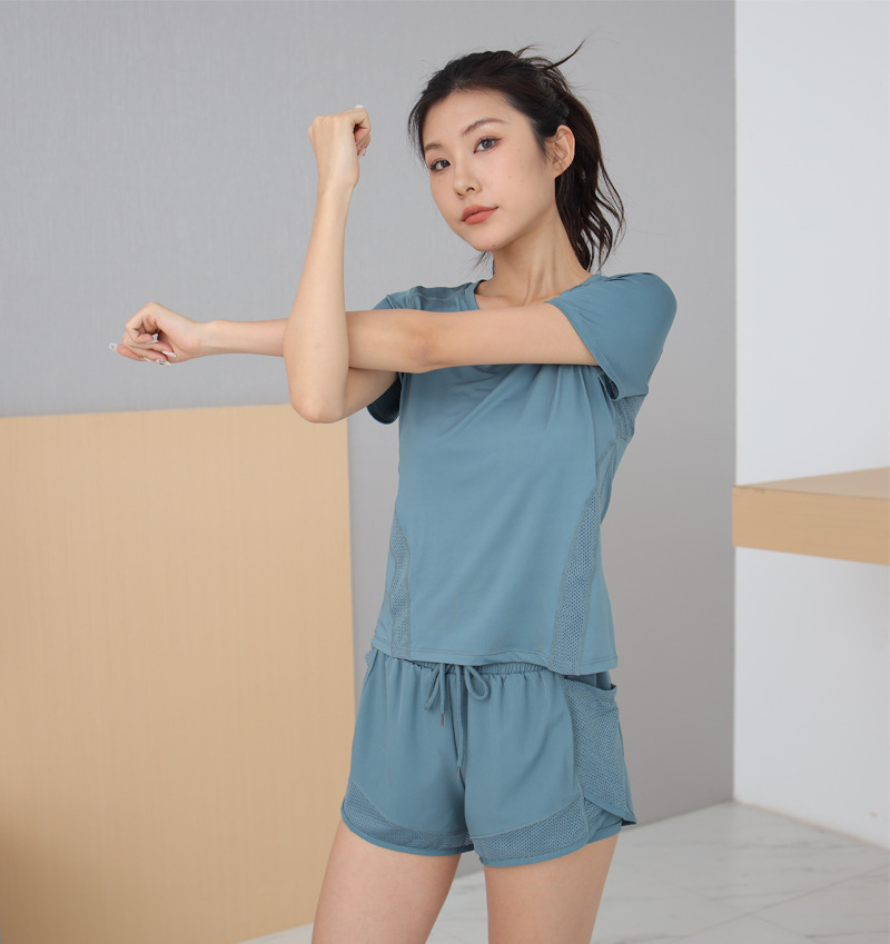 인터넷 빨간 WeChat 폭발 요가 스포츠 재킷 반소매 티셔츠 달리기 훈련 피트니스 속건 의류 여름 슬리밍 의류스토어 가기