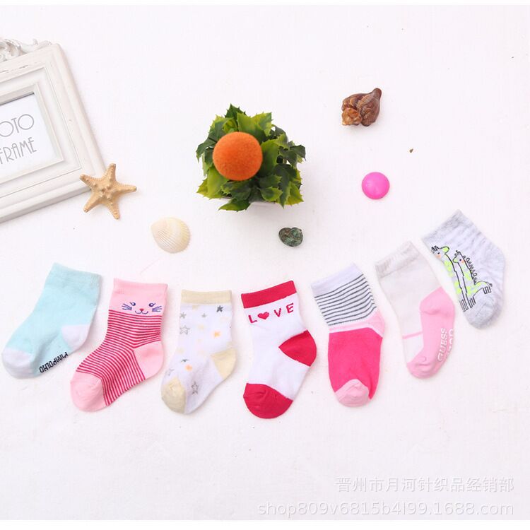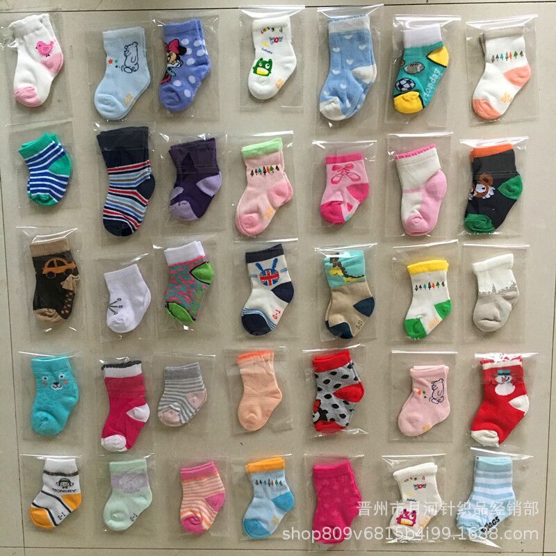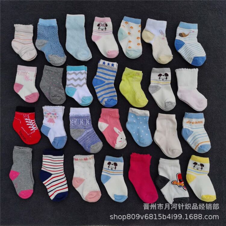库存杂色儿童袜子 涤棉混纺 花色随机搭配