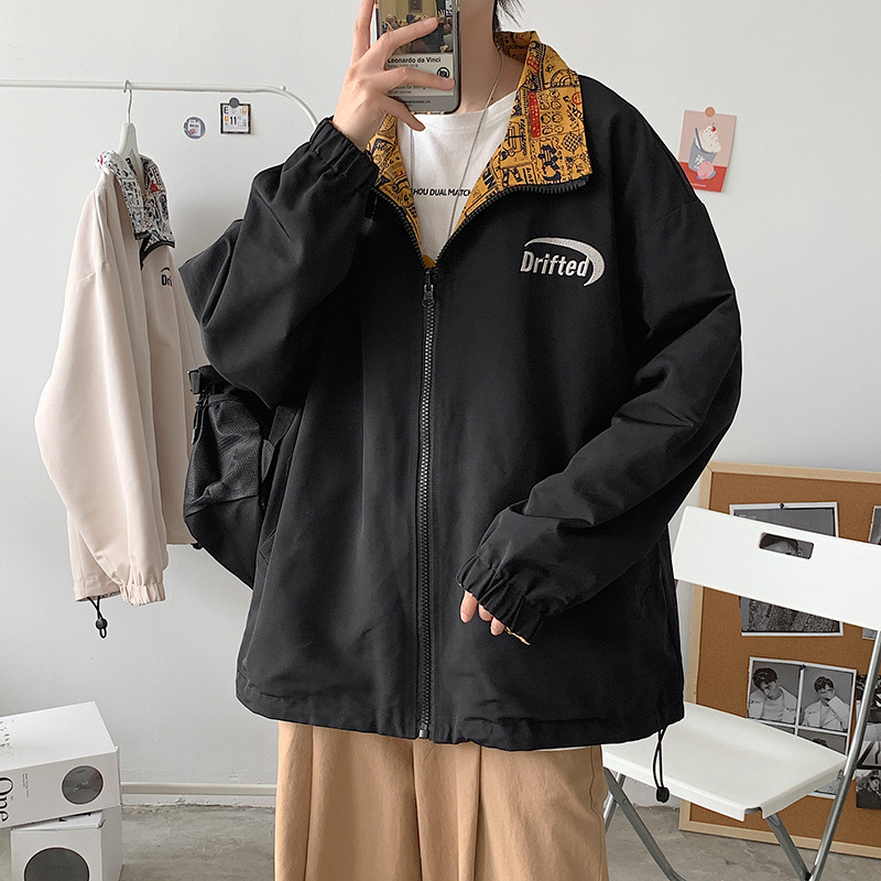 가을 겨울 남성용 리버서블 재킷 홍콩 스타일의 루즈한 캐주얼 만능 칼라 재킷 양면 재킷 유행스토어 가기