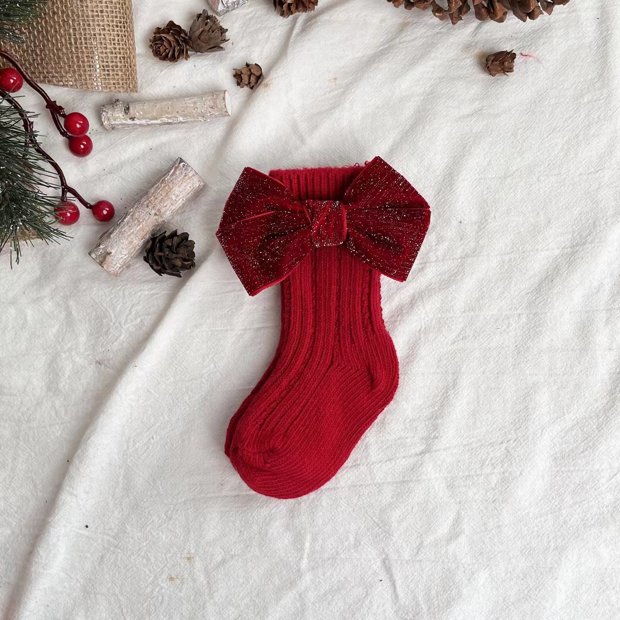 2020ins 어린이 스페인 가을과 겨울 새로운 대형 보우 울 아기 양말 단색 높고 긴 양말