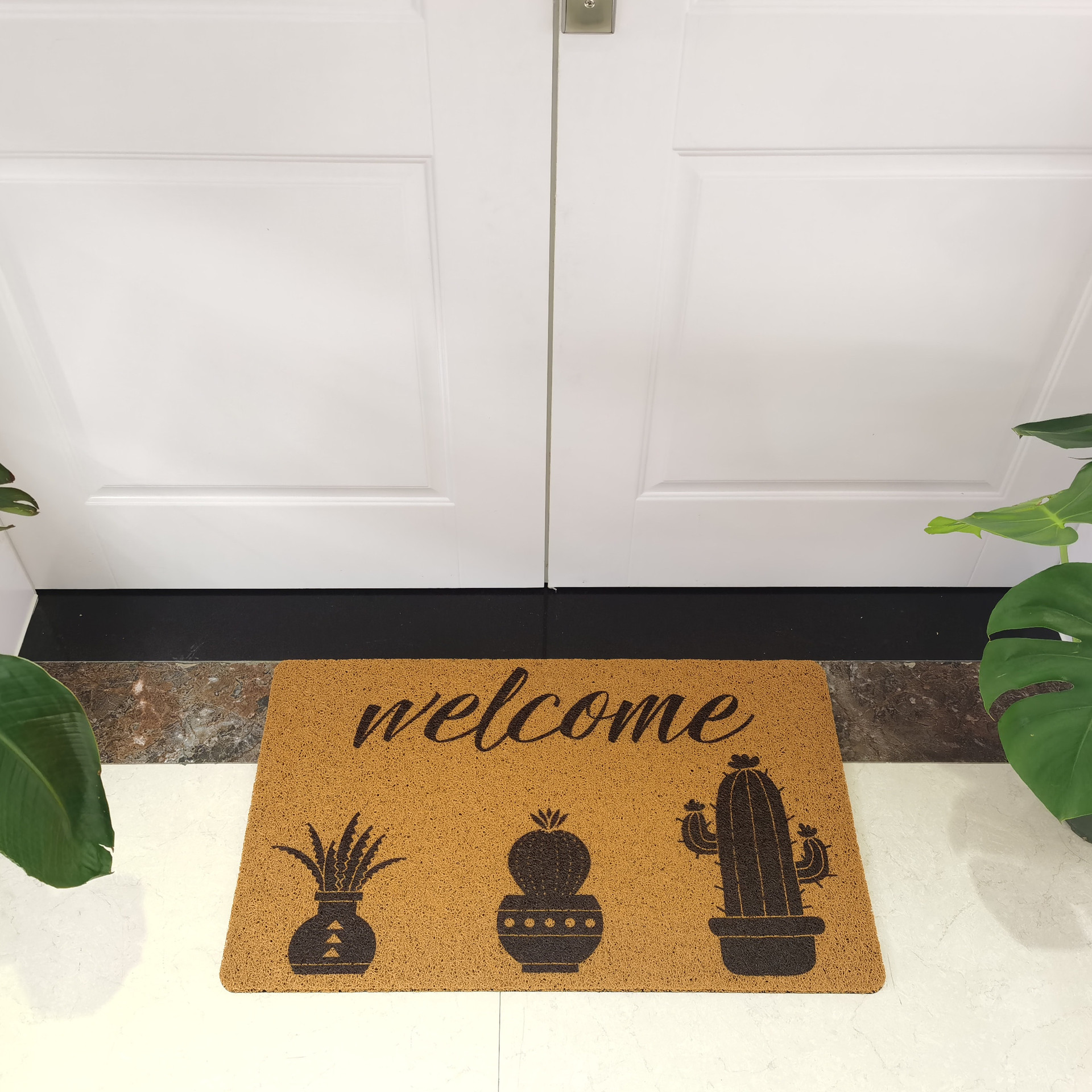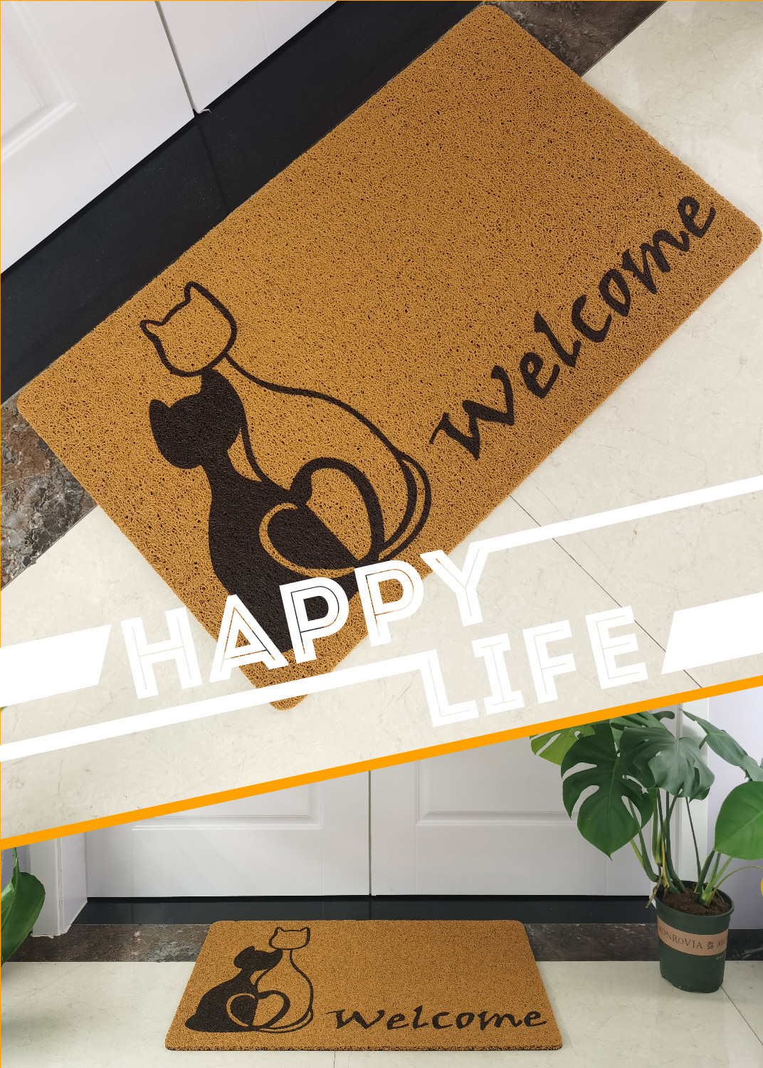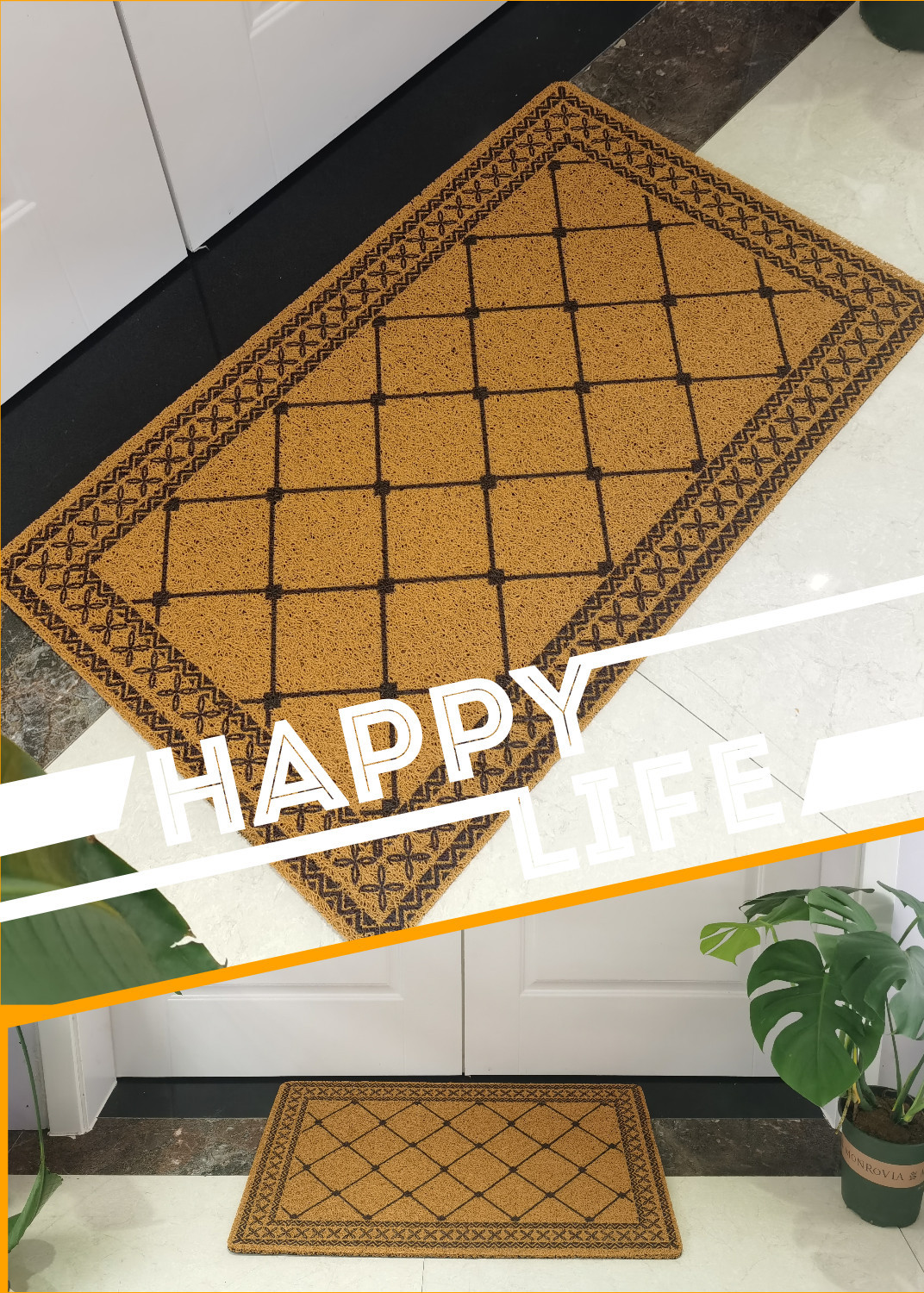 모조 코코넛 다크 브라운 카펫 PVC 실크 링 도어 매트 가정용 입구 도어 매트 미끄럼 방지 입구 발 매트