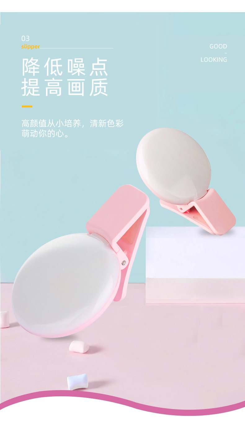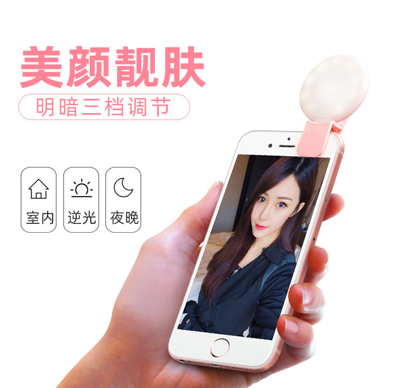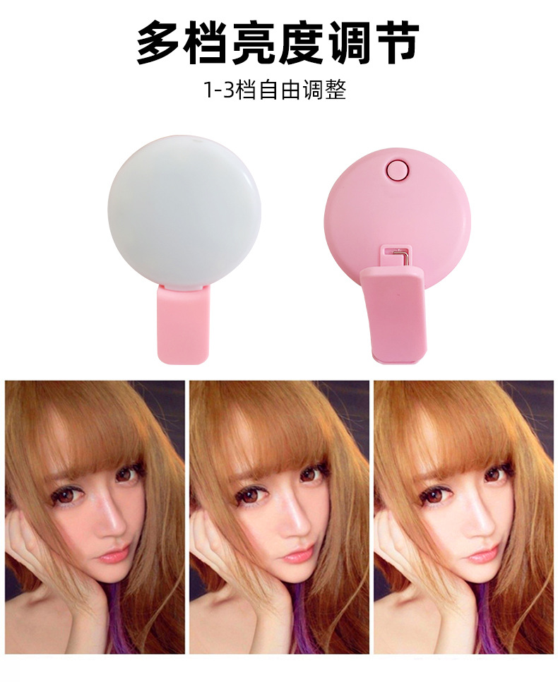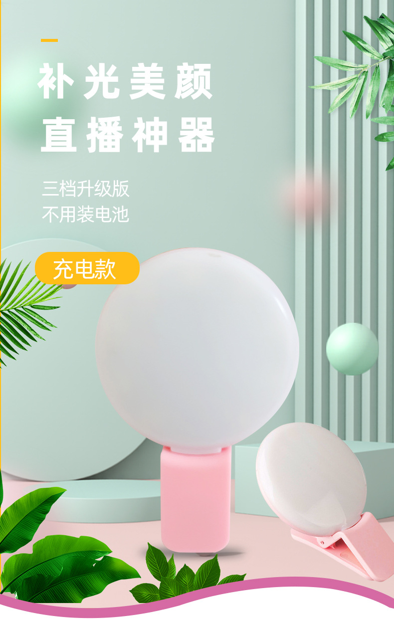 Douyin 미니 휴대 전화 필 라이트 라운드 휴대용 USB 충전 라이브 뷰티 셀카 유물 LED 필 라이트스토어 가기