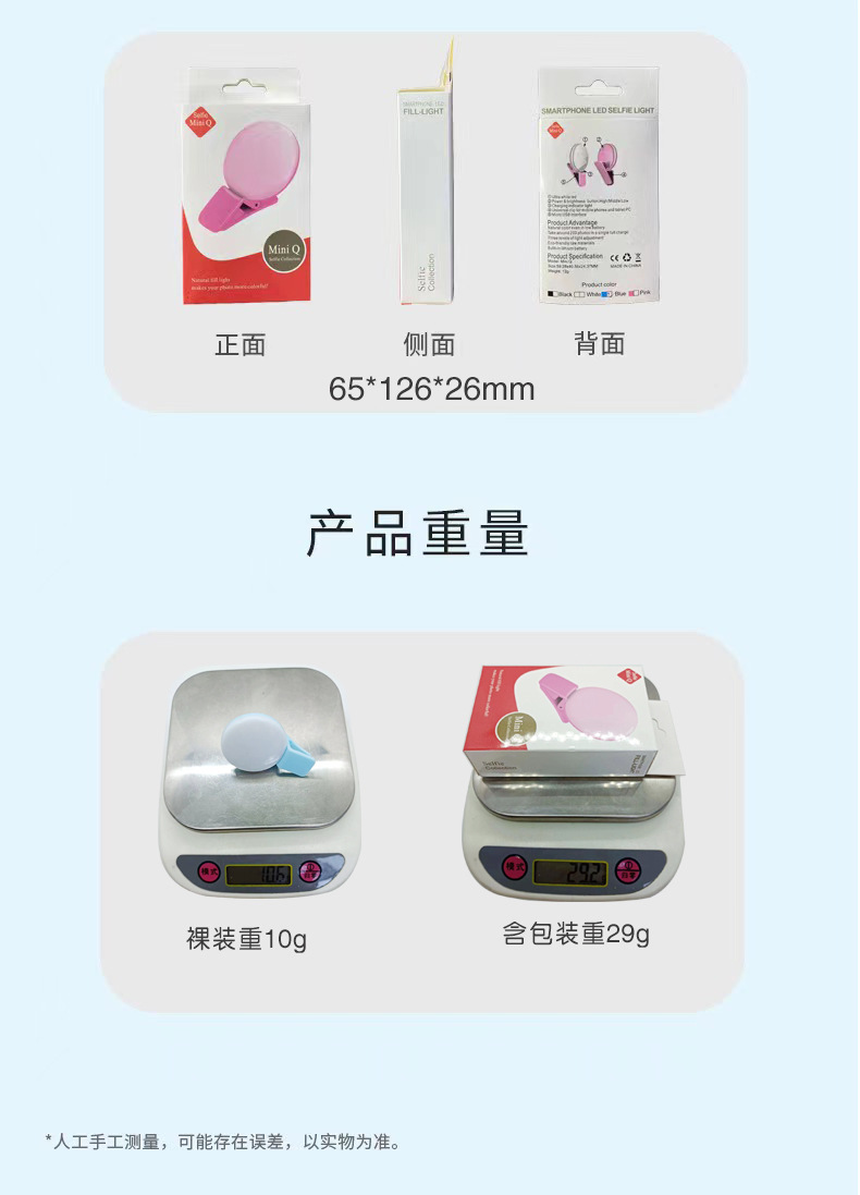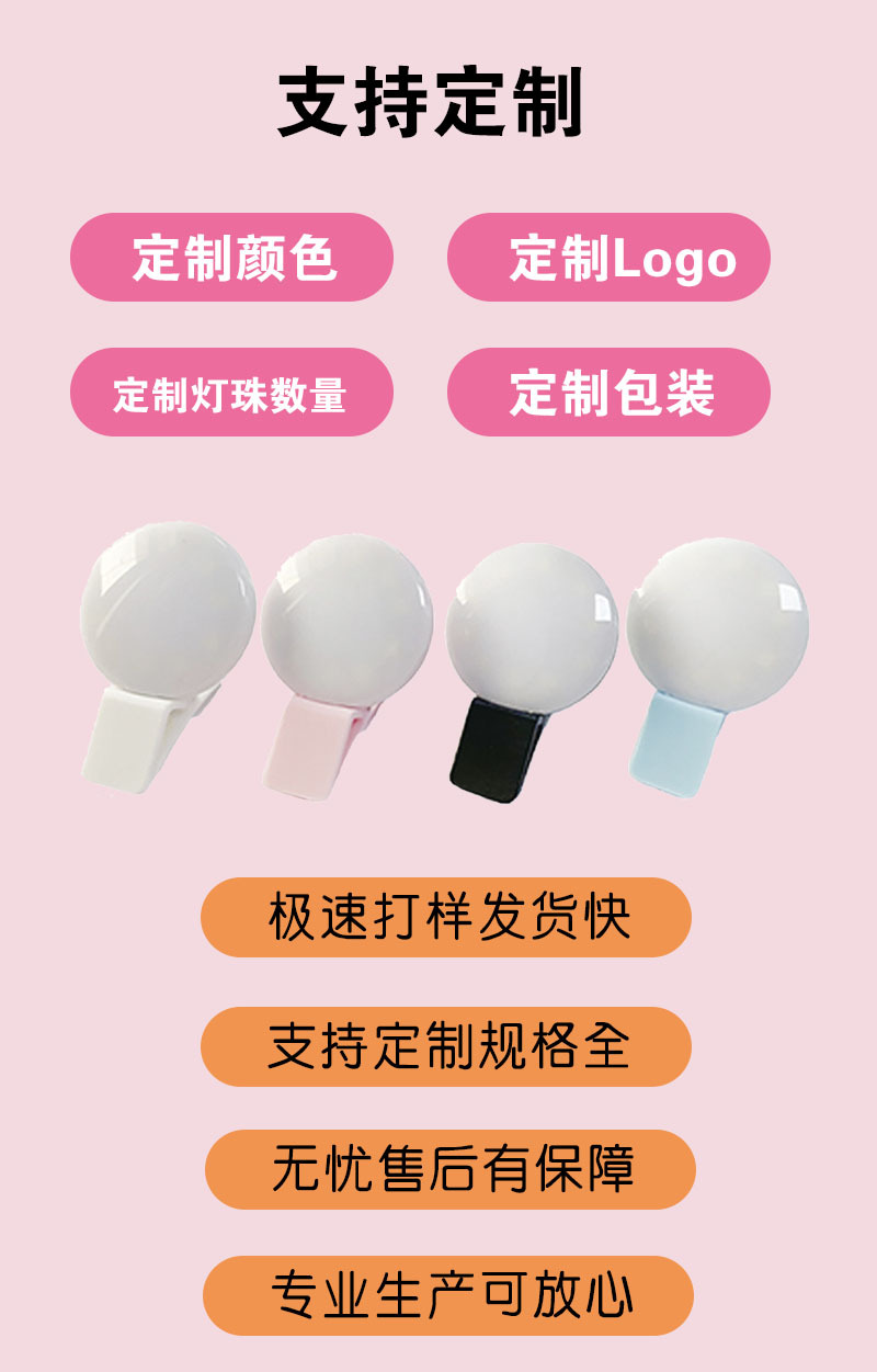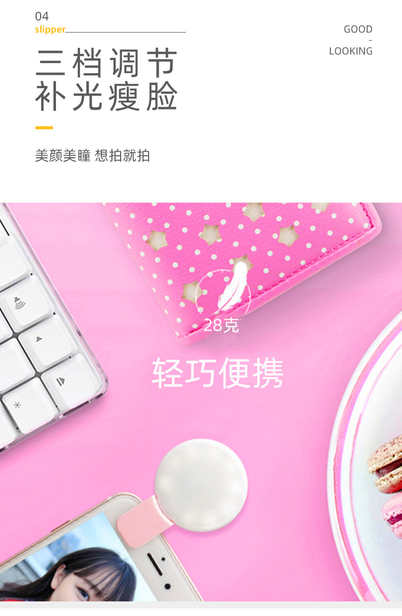 Douyin 미니 휴대 전화 필 라이트 라운드 휴대용 USB 충전 라이브 뷰티 셀카 유물 LED 필 라이트스토어 가기