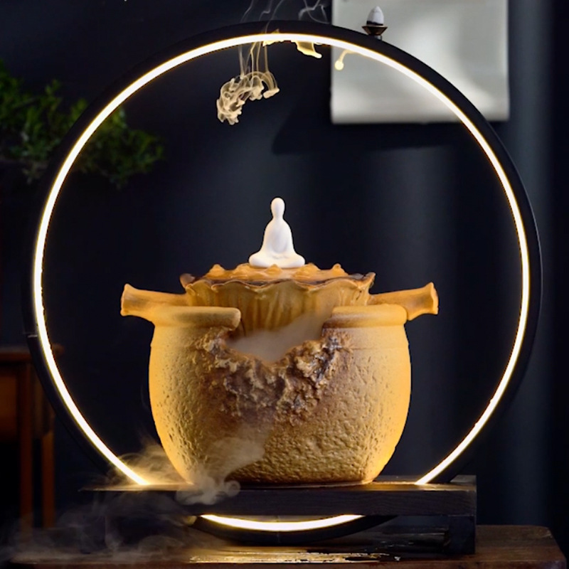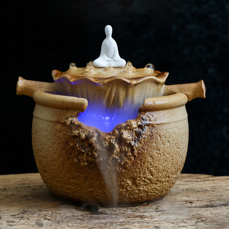 연꽃 세라믹 물 분수 장식품 차탁 분수 순환수 장치 가정용 선물 사무실 물레방아 비즈니스 선물