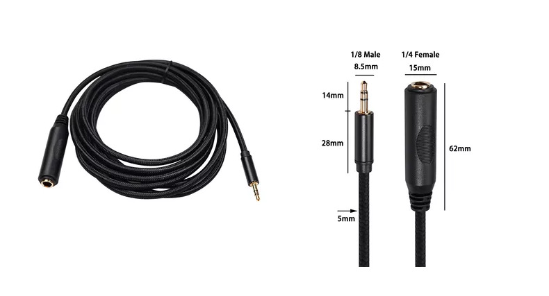 1/4“(6.35mm)母头转1/8”(3.5mm)母头转接线,用于在3.5mm的设备(智能手机,平板电脑,iPod或耳机)和6.35mm的设备(放大器,吉他,钢琴)之间传输音频,调音台,家庭立体声系统...)。例如:放大器接耳机/3.5mm扬声器适配器,6.35mm耳机至计算机适配器,钢琴至3.5mm适配器,吉他转3.5mm接口扬声器适配器等。