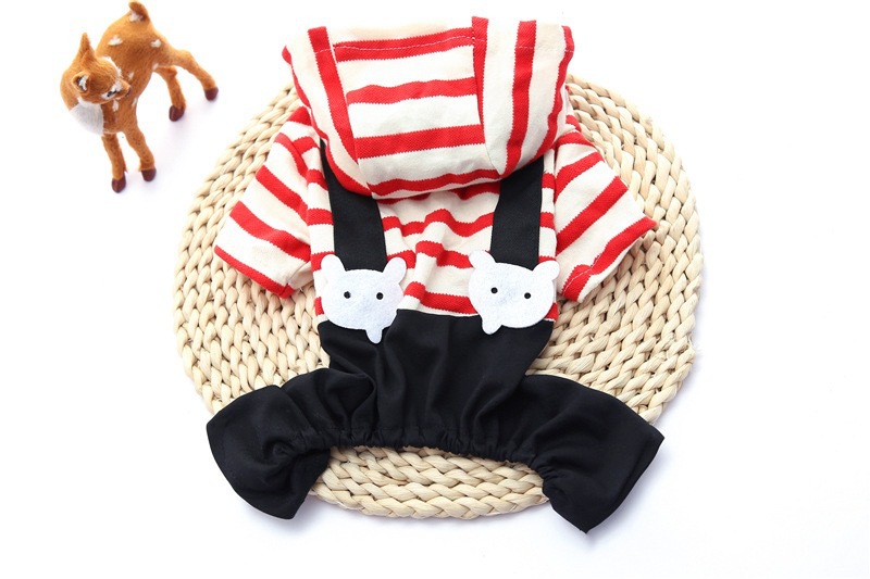 애완 동물 개 고양이 봄과 여름 줄무늬 옷 테디 쓴 곰 작은 개 후드 나무 버클 곰 가정 옷스토어 가기