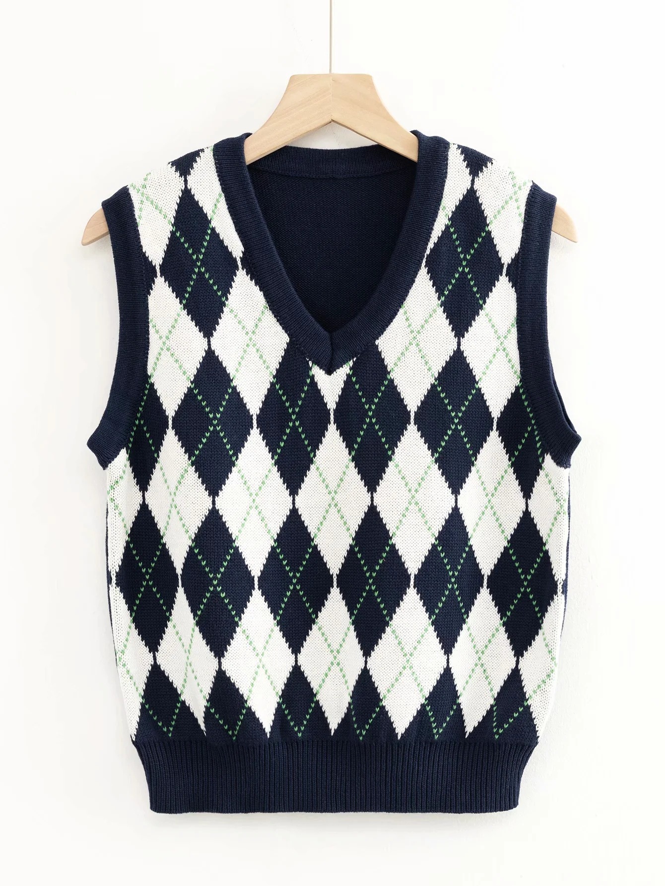 潮流女装菱形格子针织背心2020秋季新款学院风无袖针织衫马甲