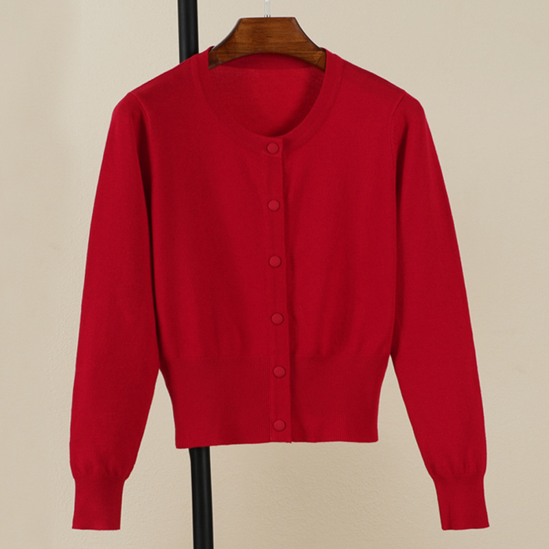 Dongguan Da Lang 여성용 스웨터 봄과 가을 새로운 여성용 라운드 넥 짧은 울 탑 코트 니트 스웨터 가디건