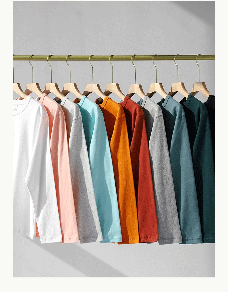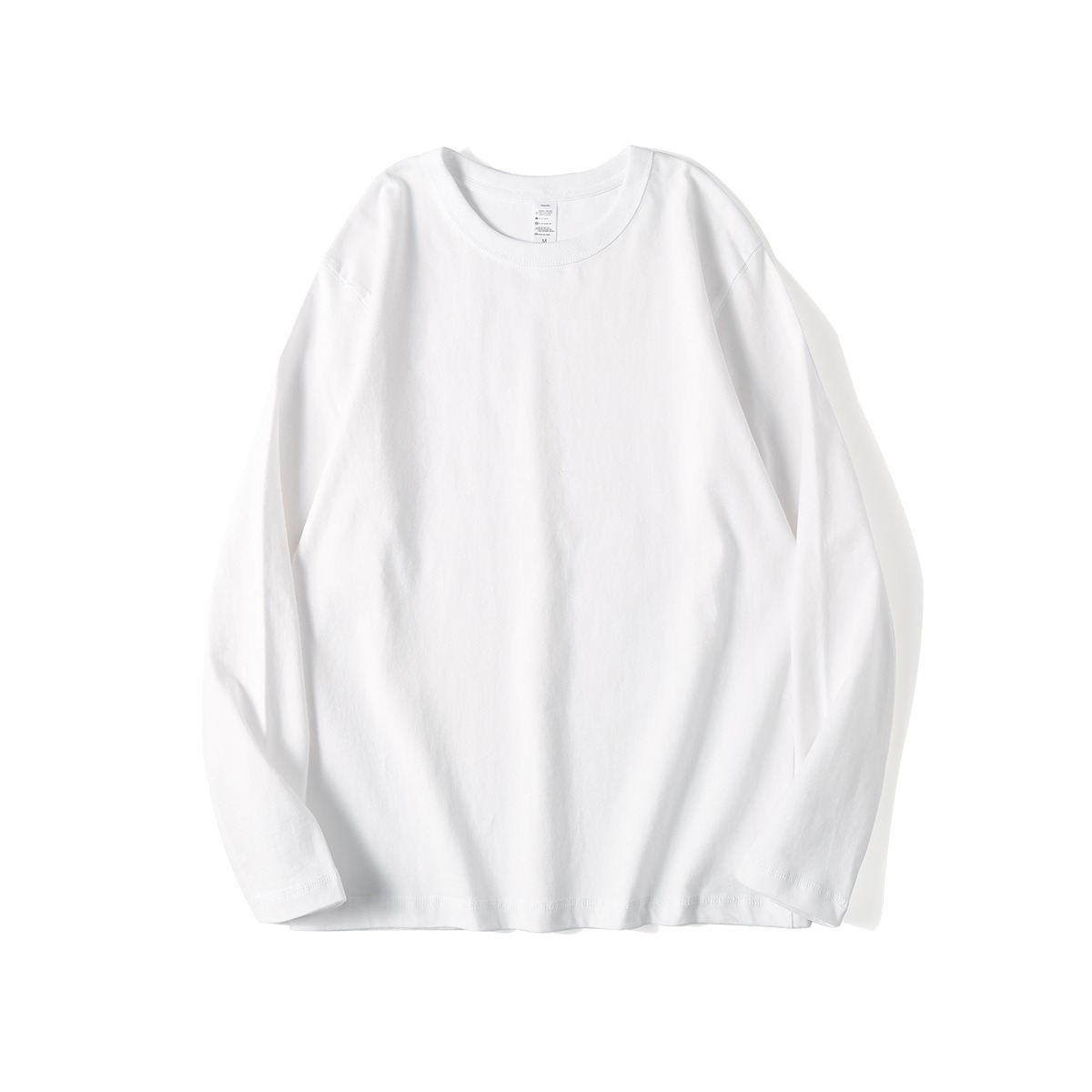 3 바늘 320g 헤비급 신장면 흰색 긴팔 티셔츠 남성용 느슨한 두꺼운 불 침투성 내부 셔츠 베이스 셔츠스토어 가기