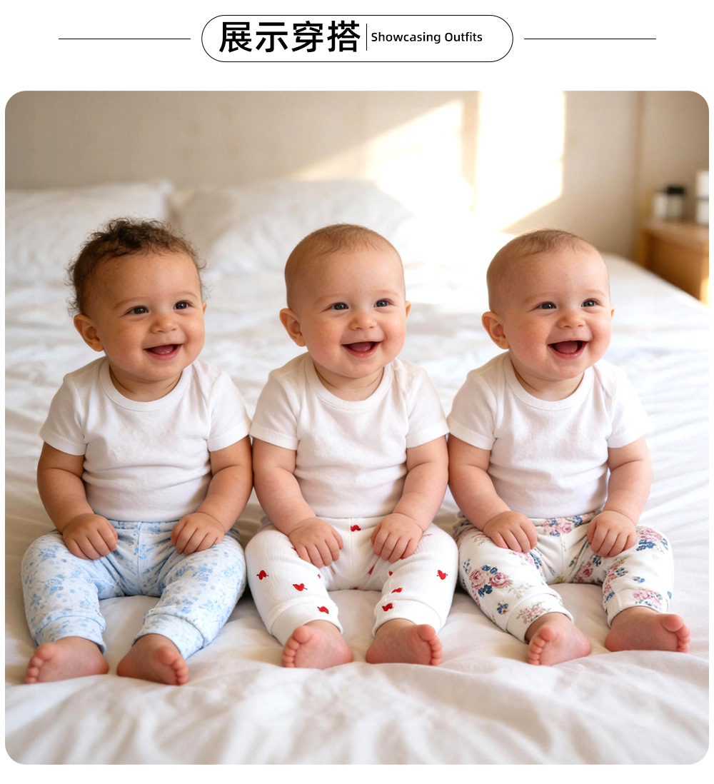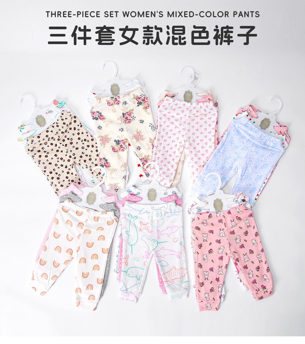 여아용 바지 순면 3피스 아기 바지 작은 월령 혼합 색상 스레드 커프스 바지 레깅스 9개월 아기 바지스토어 가기