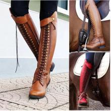 2019 새로운 유럽 및 미국 대외 무역 부츠 무릎 부츠 리벳 레이스 두꺼운 뒤꿈치 라운드 헤드 나이트 부츠 수출