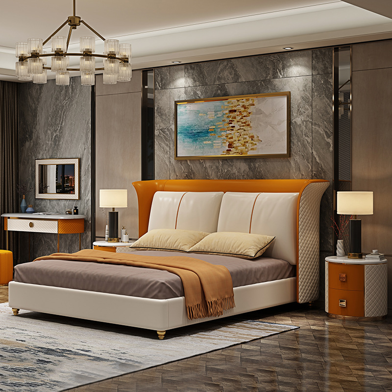 스테인레스 스틸 침대 홍콩 스타일 가벼운 고급 고급 고급 가죽 침대 어린이 침대 마스터 침실 웨딩 침대 현대 간단한 더블 퀸 침대