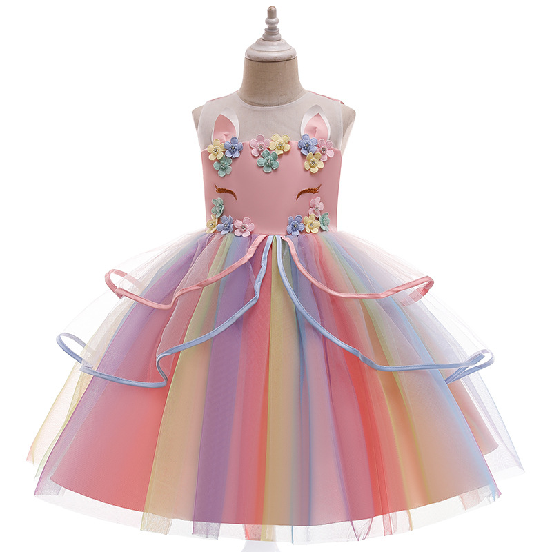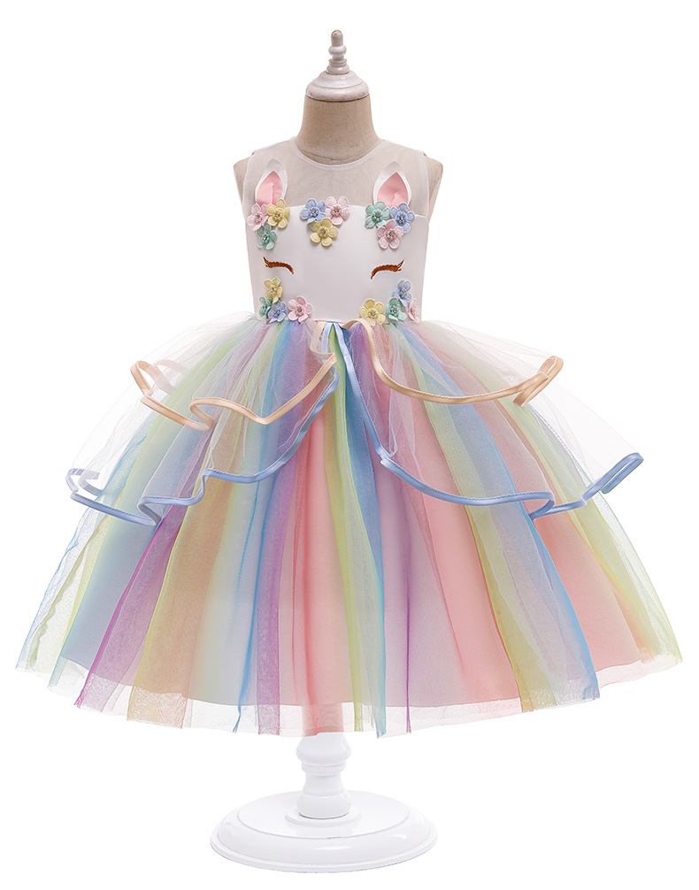 2024 신상 여아 드레스 공주 드레스 유니콘 퍼프 드레스 아마존 아동 드레스 제조업체 도매스토어 가기