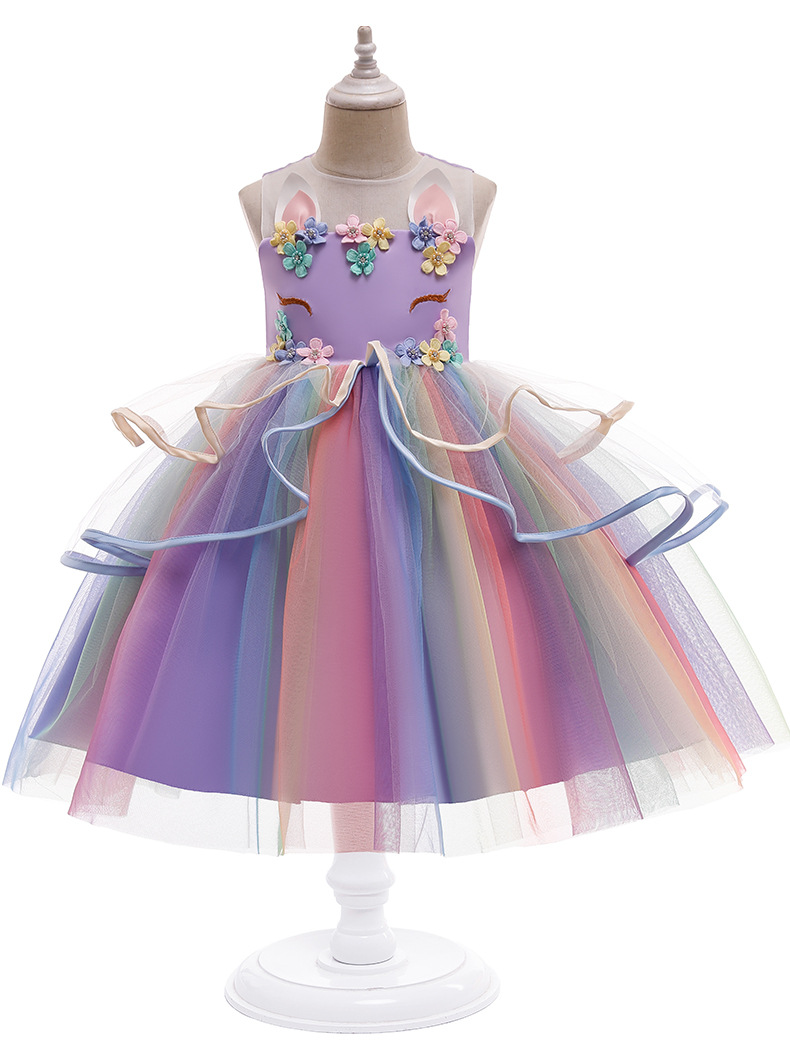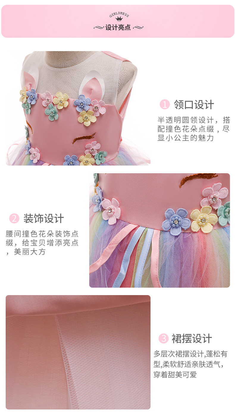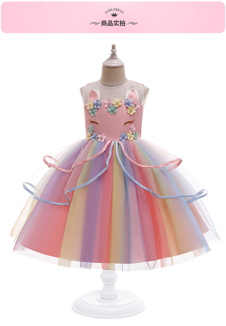 2024 신상 여아 드레스 공주 드레스 유니콘 퍼프 드레스 아마존 아동 드레스 제조업체 도매