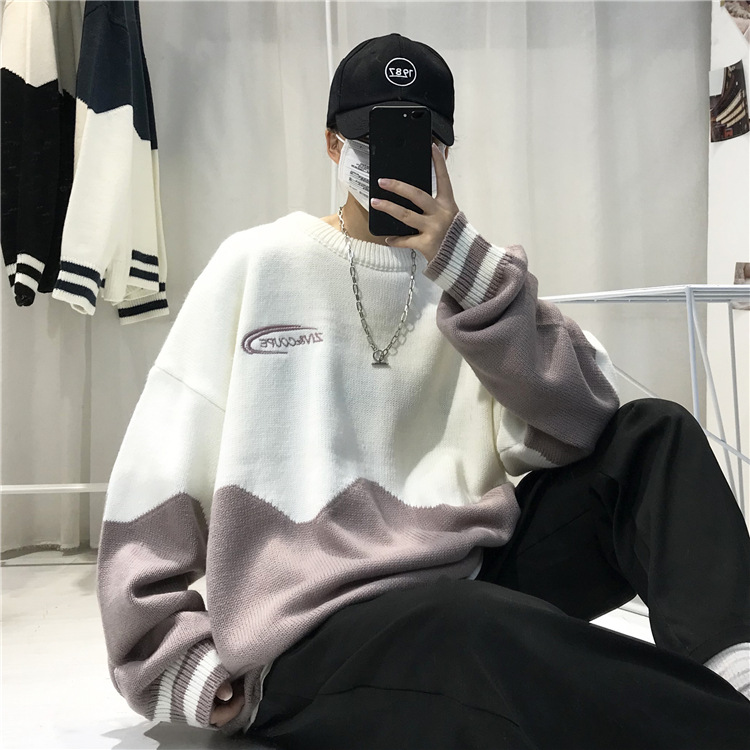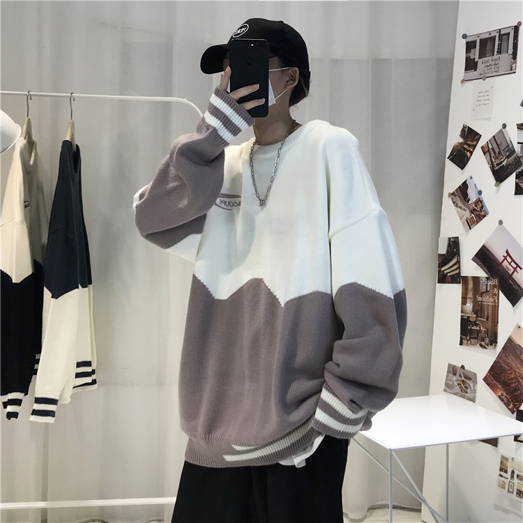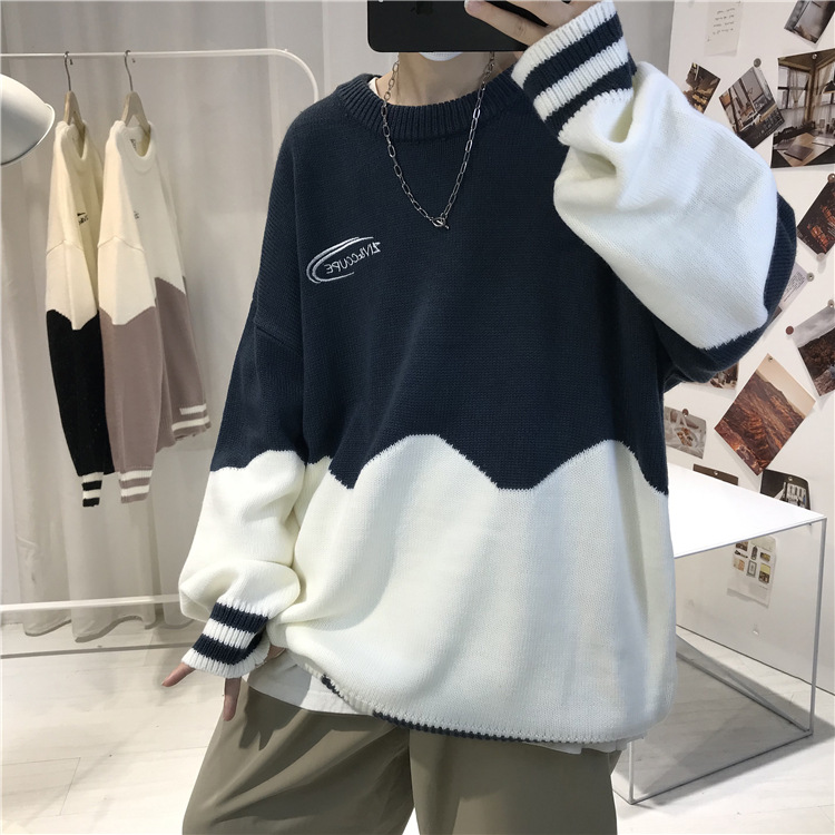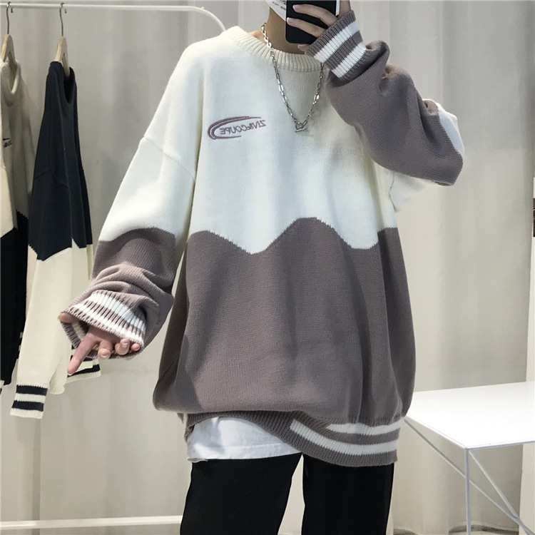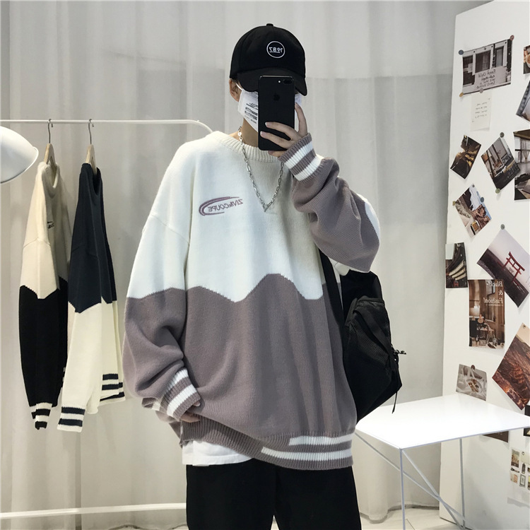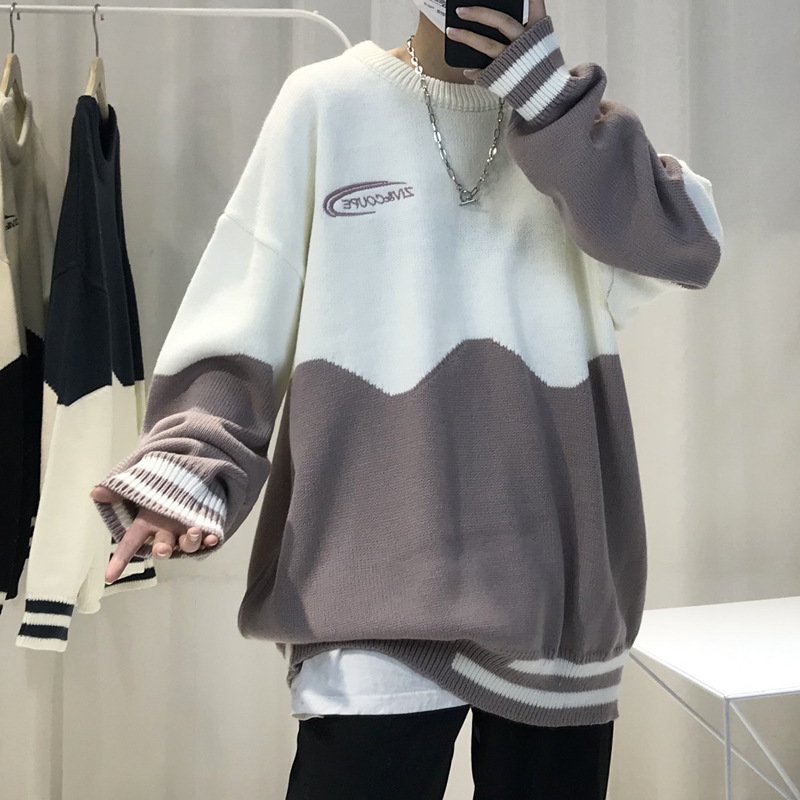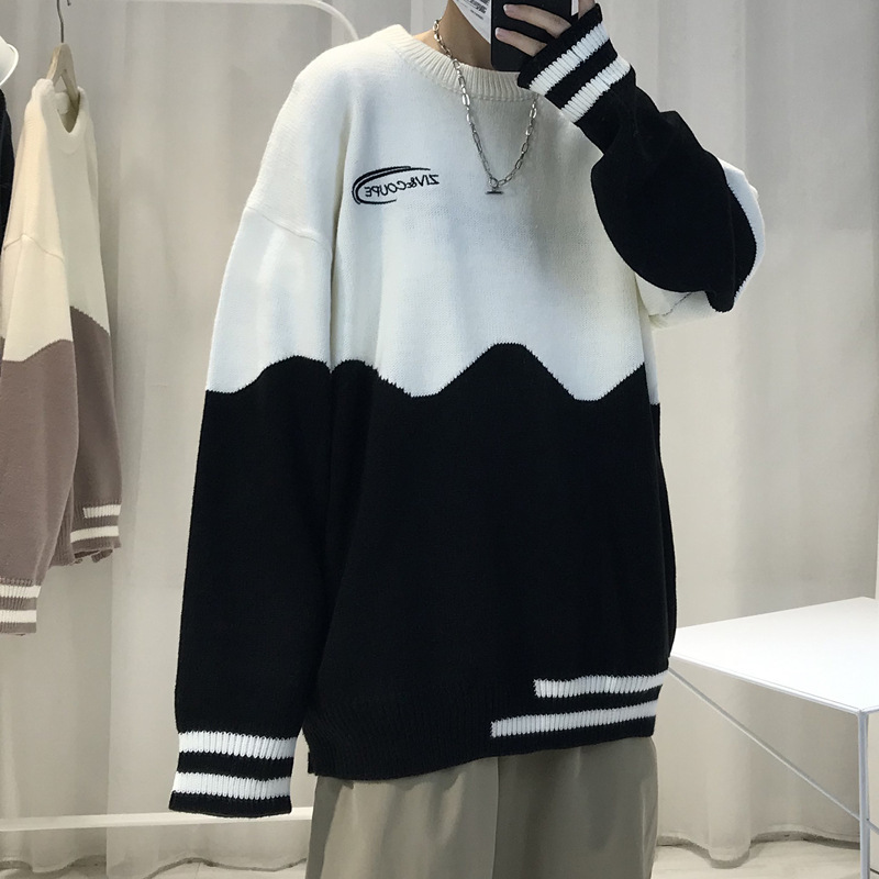 게으른 스타일 스웨터 남자의 두꺼운 겨울 인 포트 패션 컬러 매칭 겉옷 니트 스웨터 한국식 유행 개인 재킷