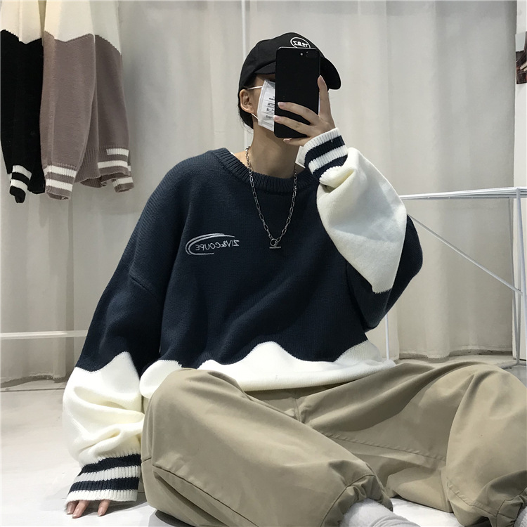 게으른 스타일 스웨터 남자의 두꺼운 겨울 인 포트 패션 컬러 매칭 겉옷 니트 스웨터 한국식 유행 개인 재킷스토어 가기