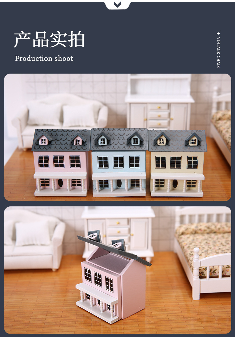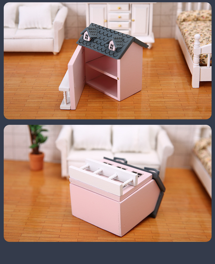 인형 집 인형 집 미니 가구 인형을위한 작은 집 핑크 벽 회색 탑 귀여운 포켓 빌라스토어 가기