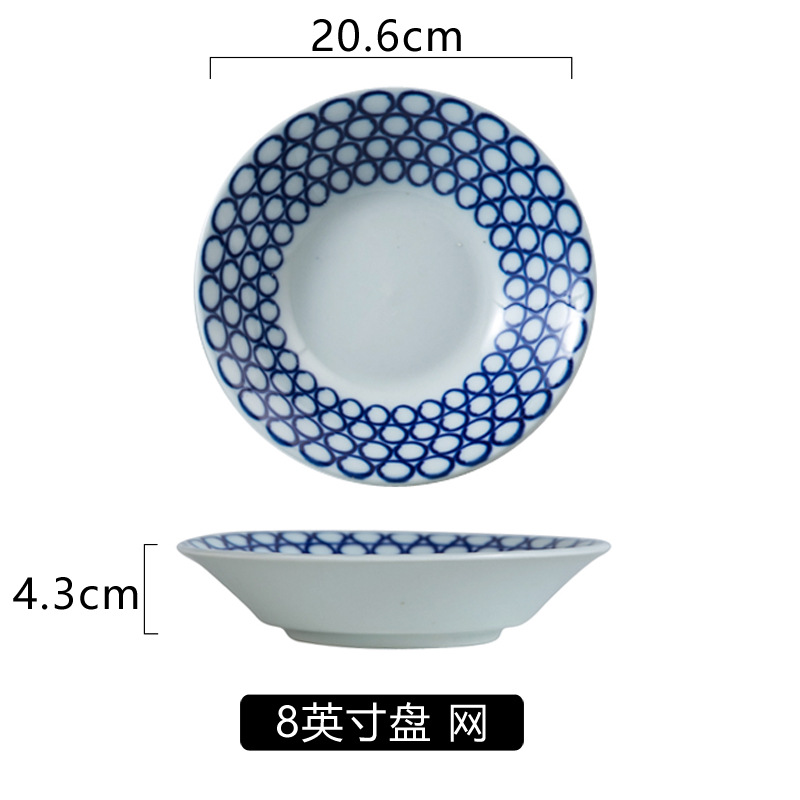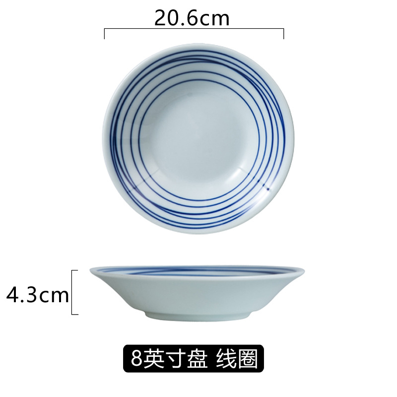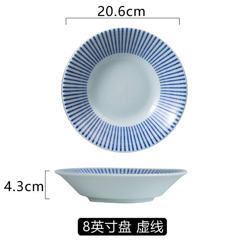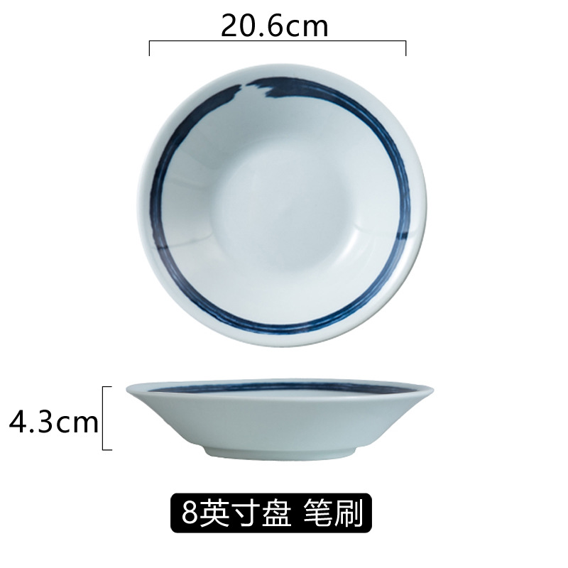 일본식 고온 언더글레이즈 색상 8 인치 세라믹 식기 호텔 가정용 딥 플레이트 접시 생선 접시 라운드 플레이트 간단한 아침 식사 접시