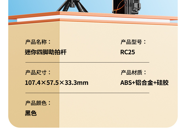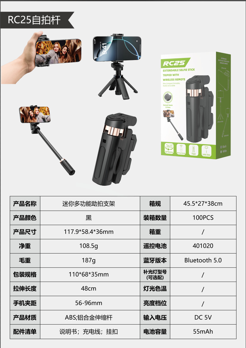 • RC25+D10 싱글 뷰티 라이트 미니 셀카봉 블랙