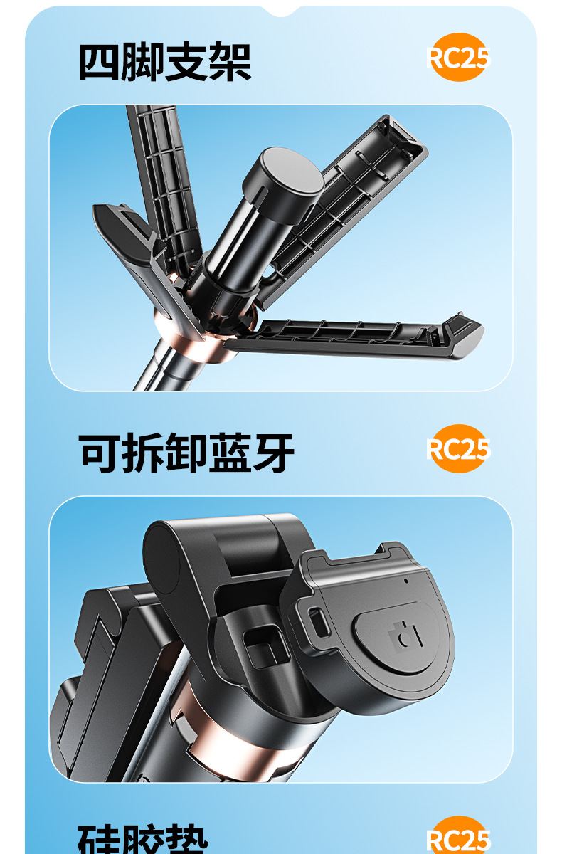 • RC25+D10 듀얼 뷰티 라이트 미니 셀카봉 블랙