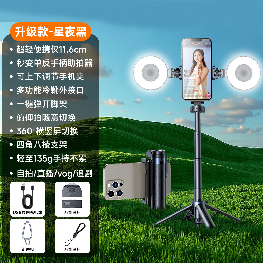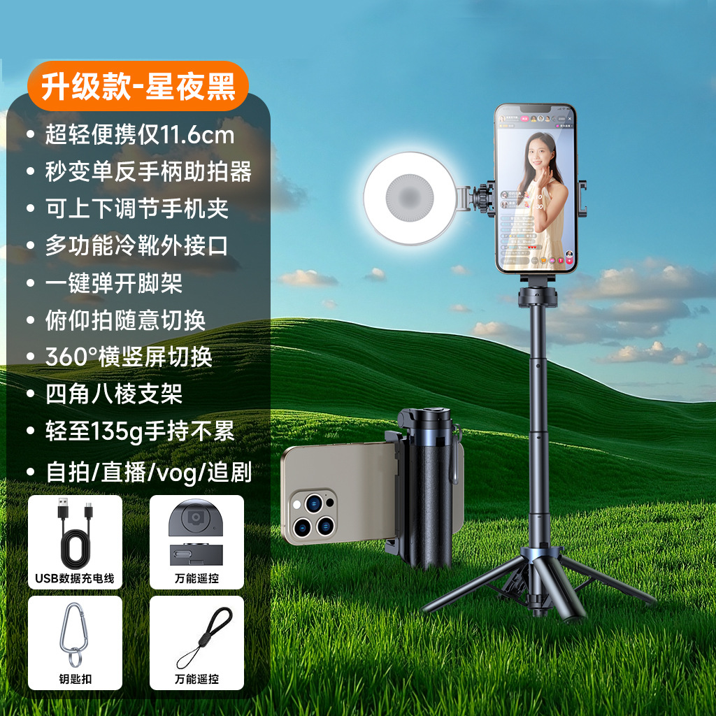휴대 전화 셀카 스틱 연장 블루투스 통합 아름다움 채우기 조명 원격 제어 다기능 라이브 데스크탑 삼각대
