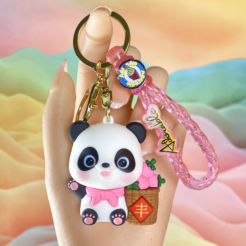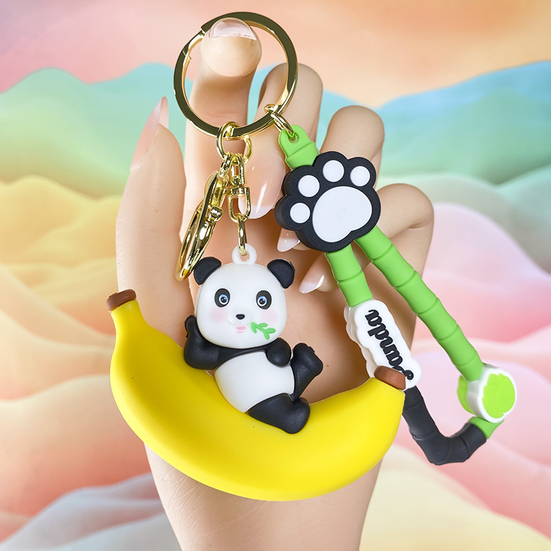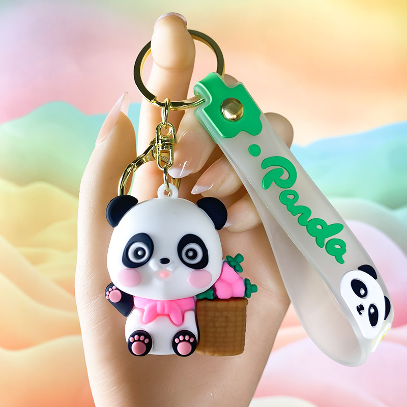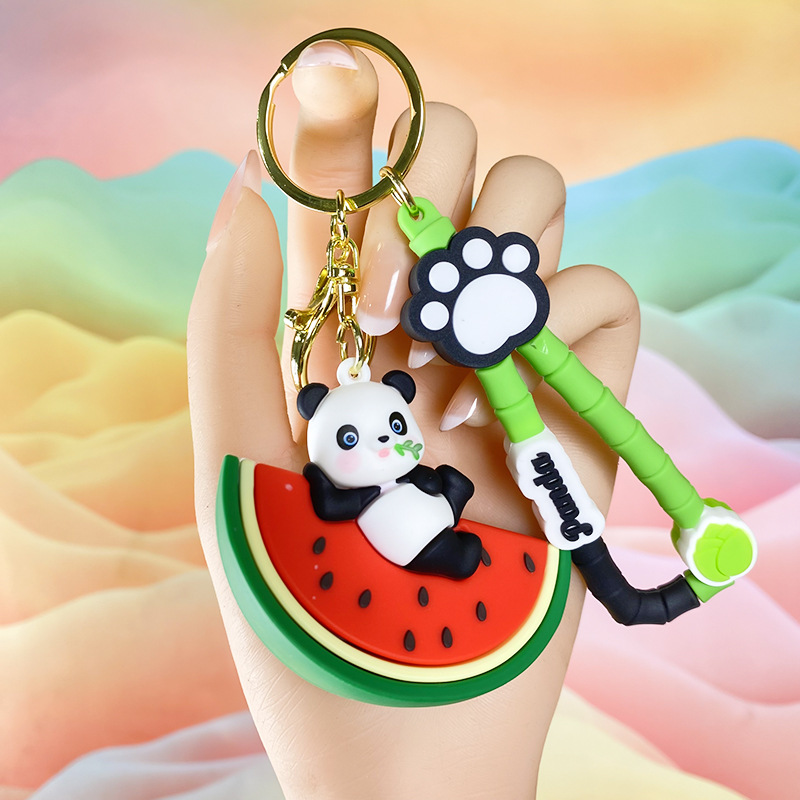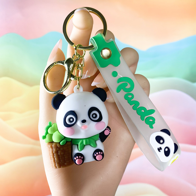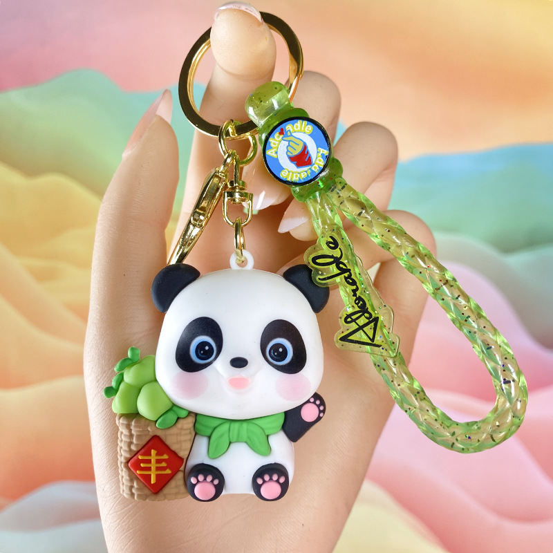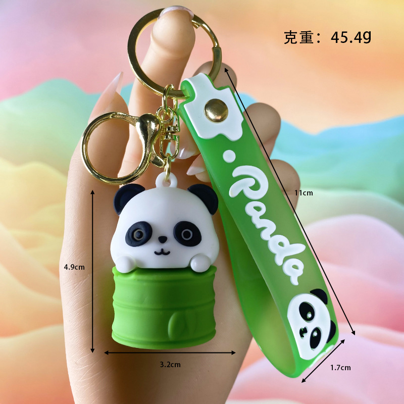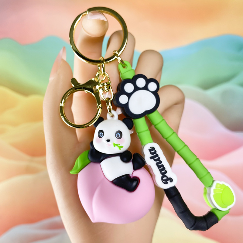 창조적 인 대나무 팬더 키 체인 만화 커플 귀여운 팬더 펜던트 버클 가방 액세서리 작은 선물 도매