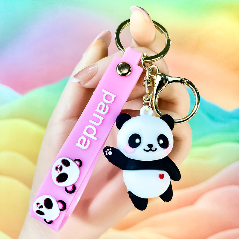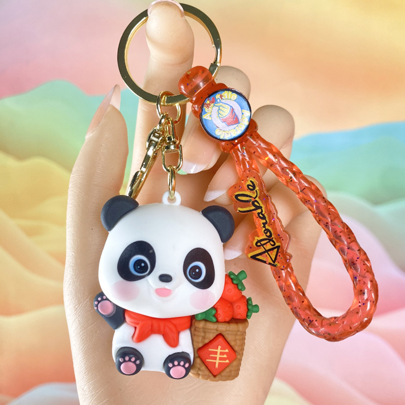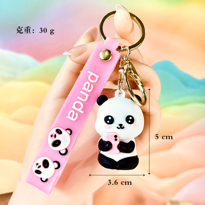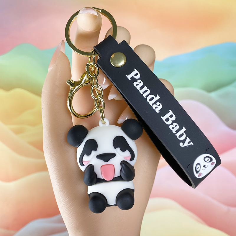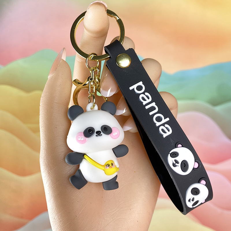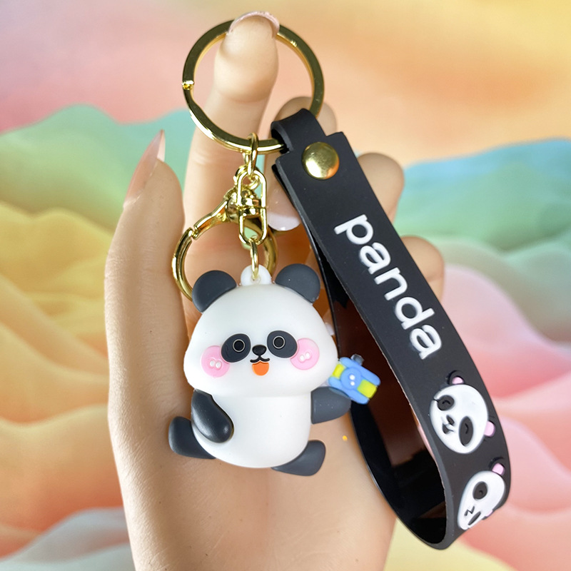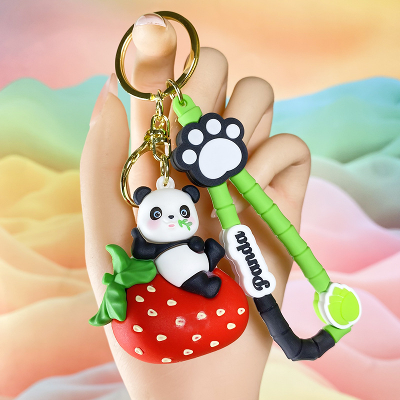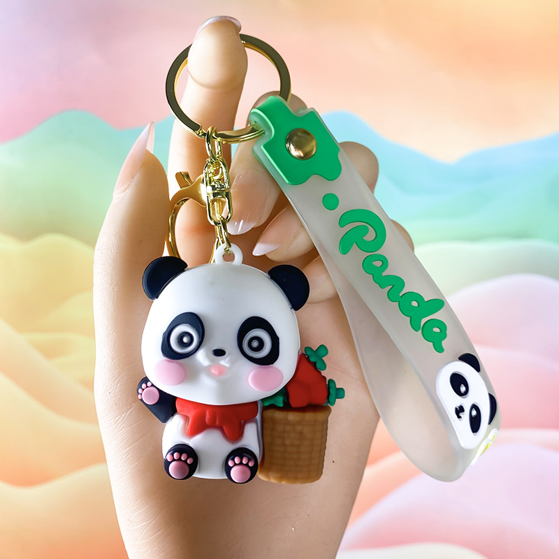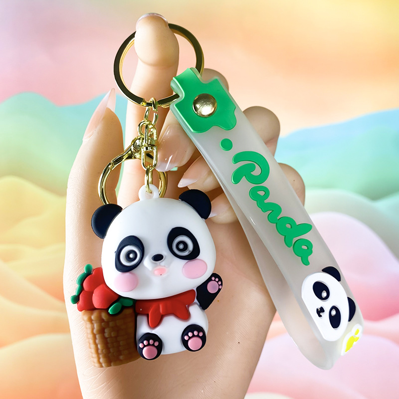 창조적 인 대나무 팬더 키 체인 만화 커플 귀여운 팬더 펜던트 버클 가방 액세서리 작은 선물 도매