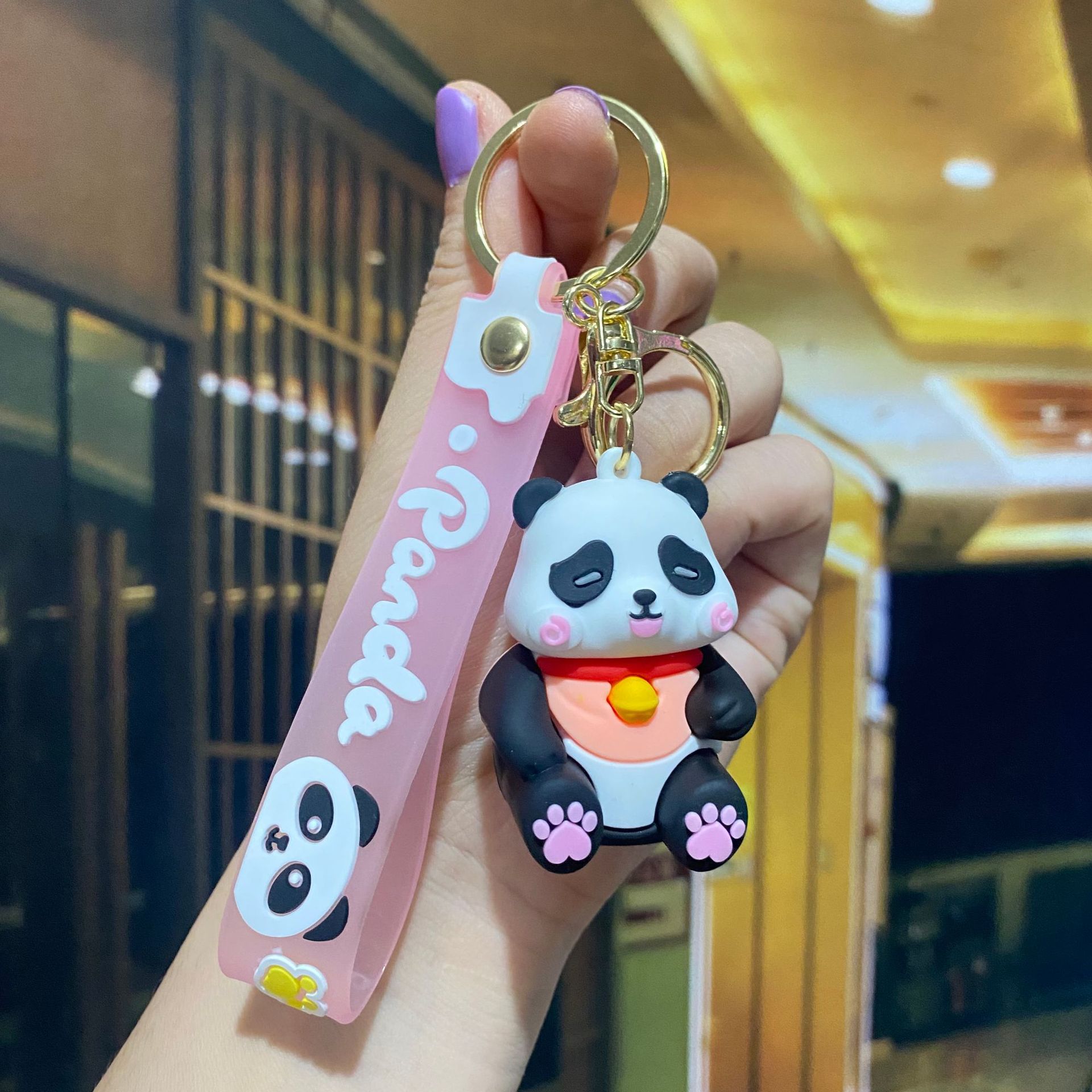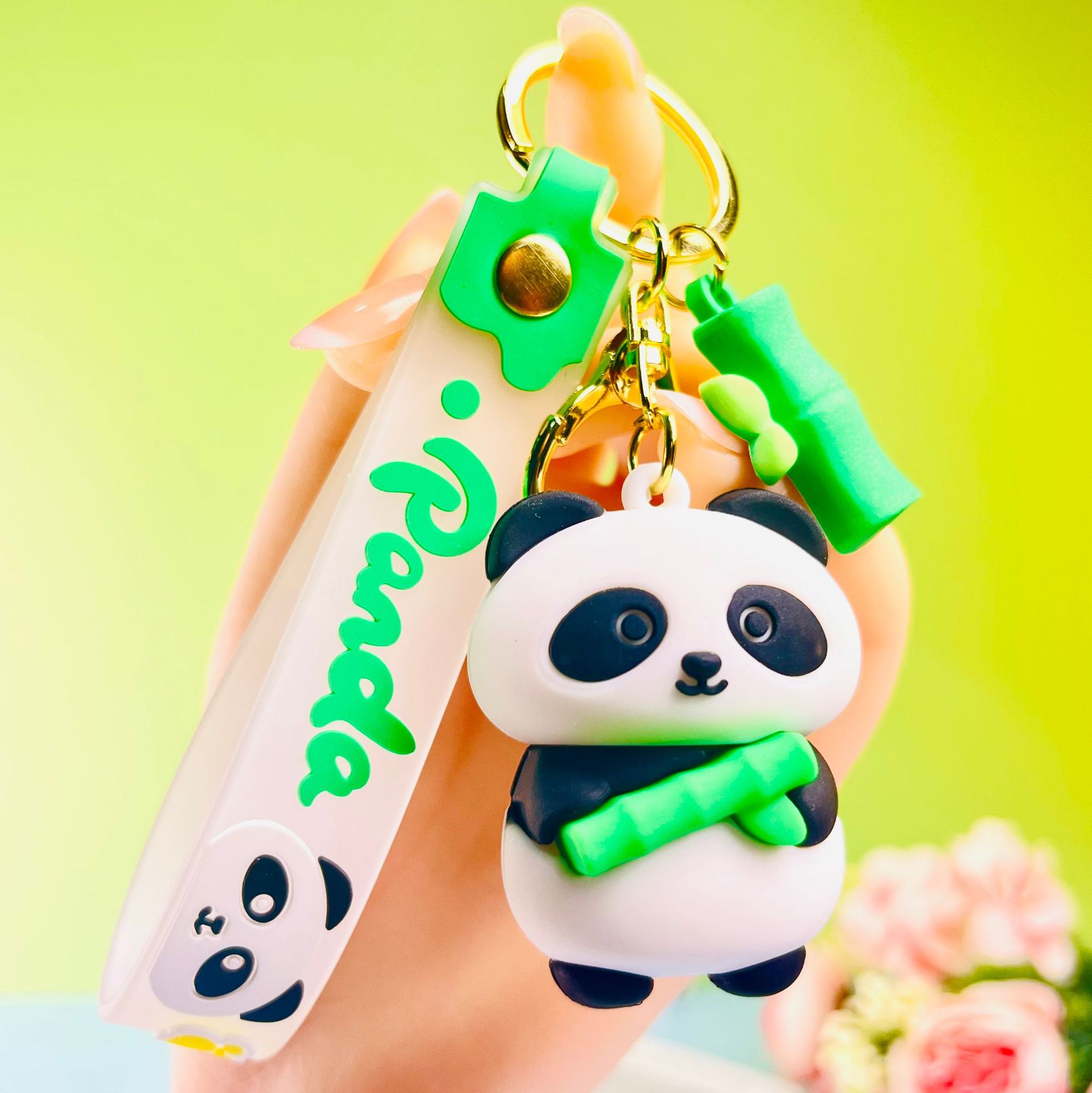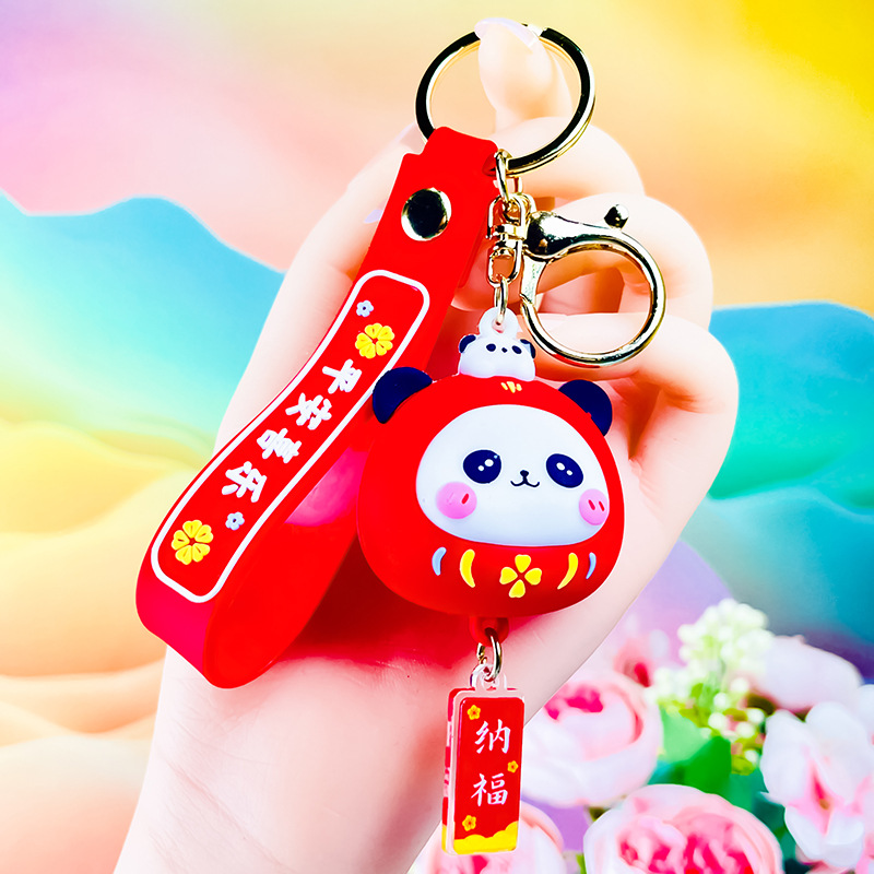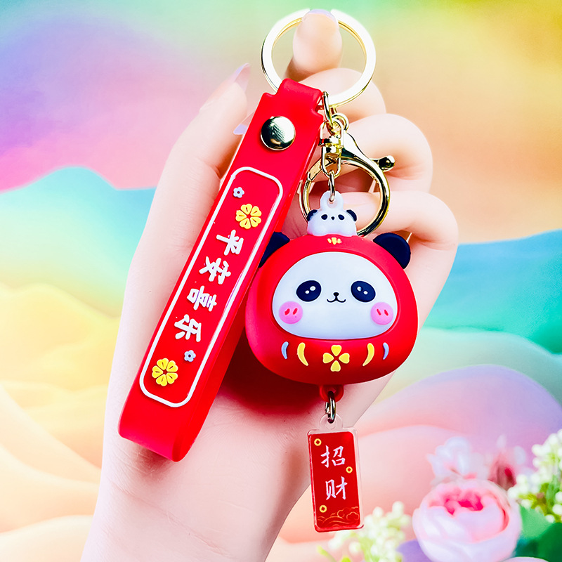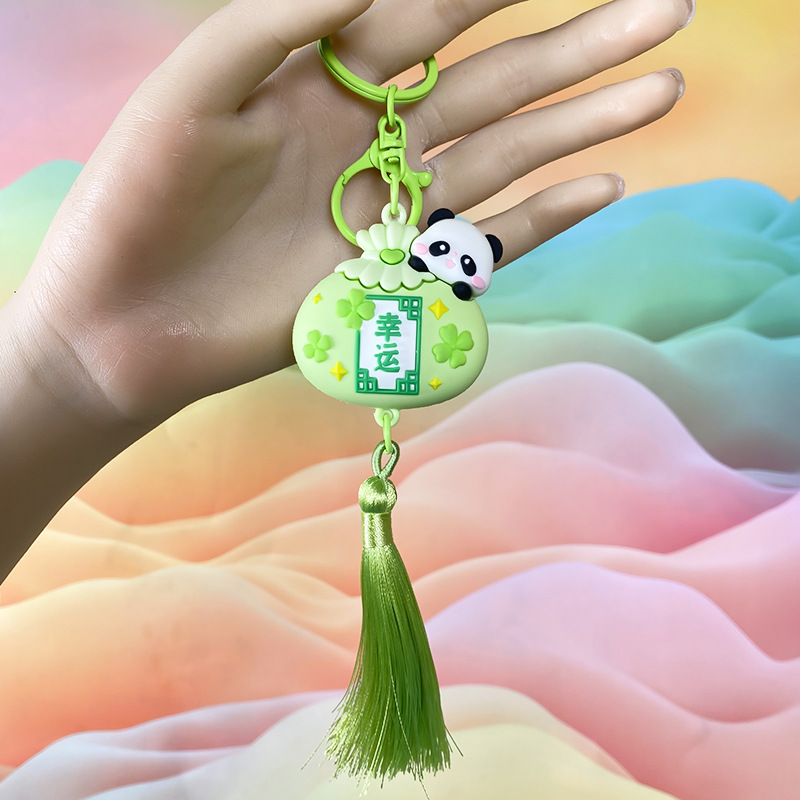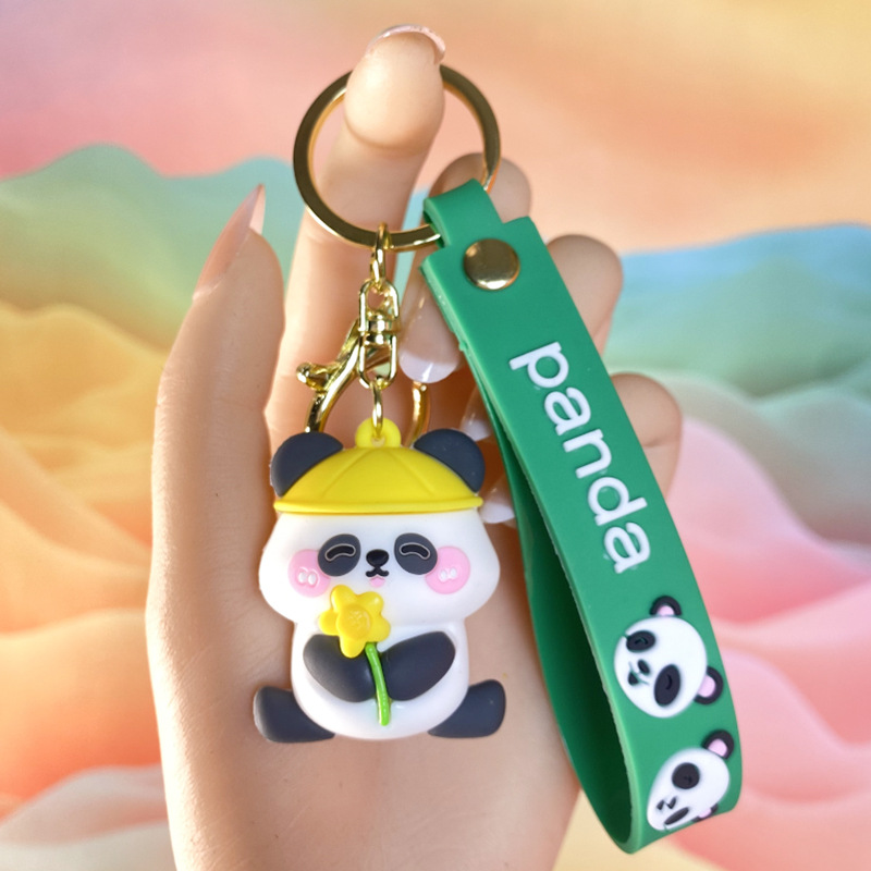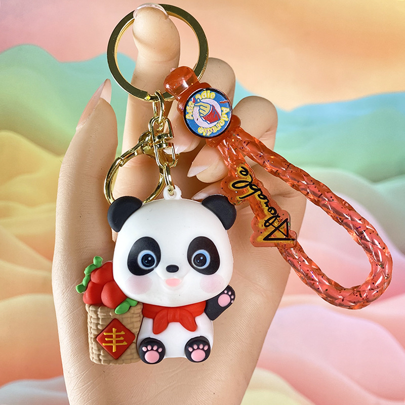 창조적 인 대나무 팬더 키 체인 만화 커플 귀여운 팬더 펜던트 버클 가방 액세서리 작은 선물 도매