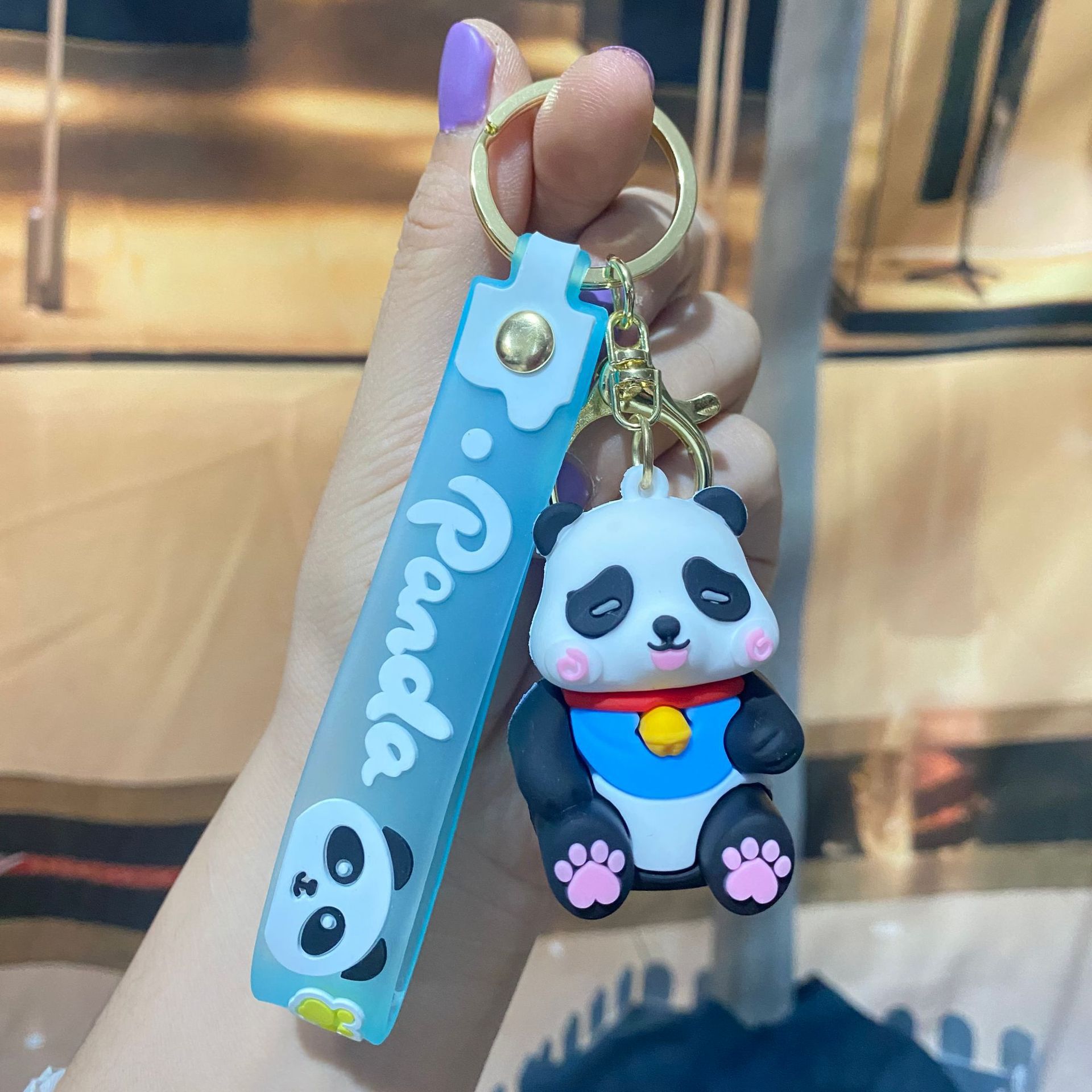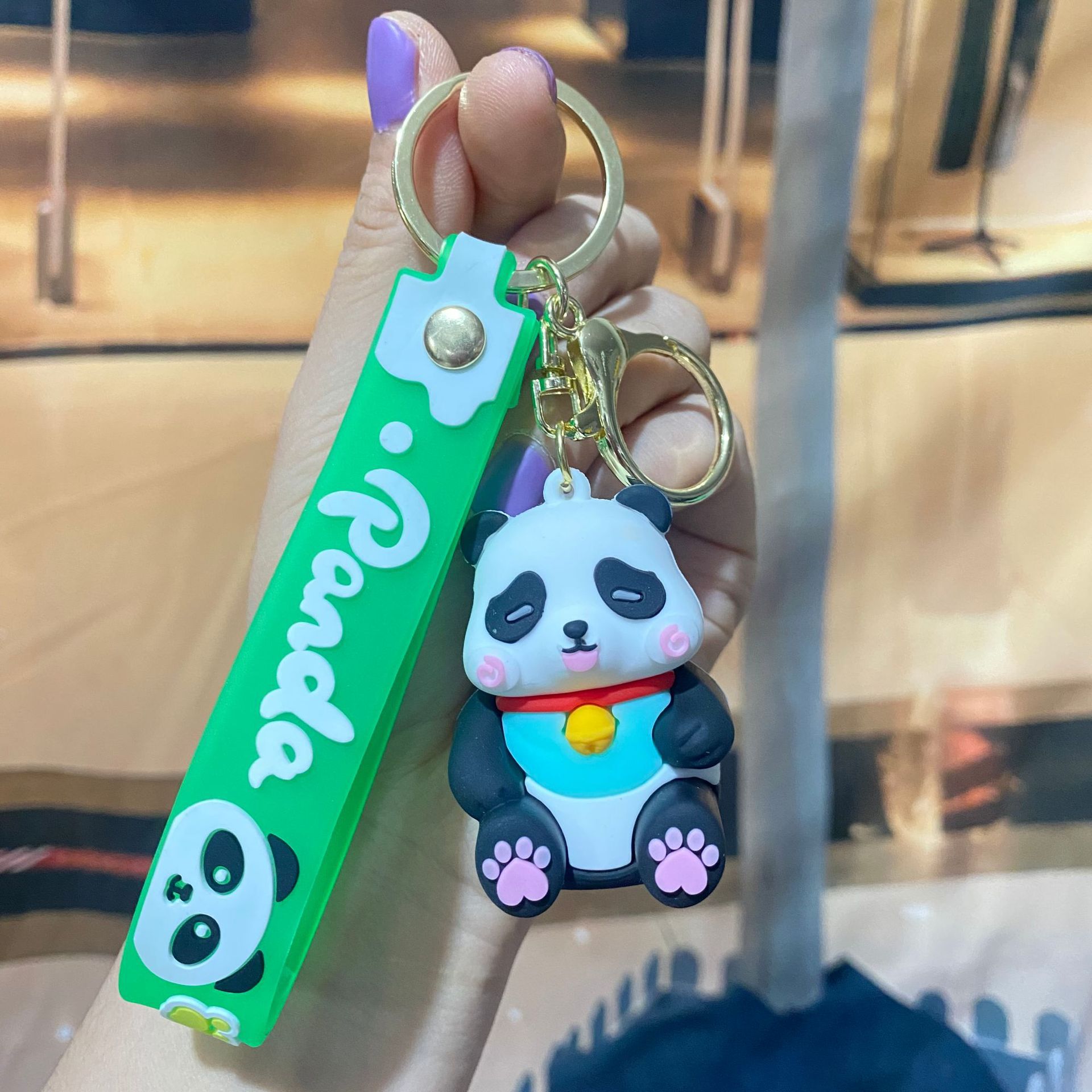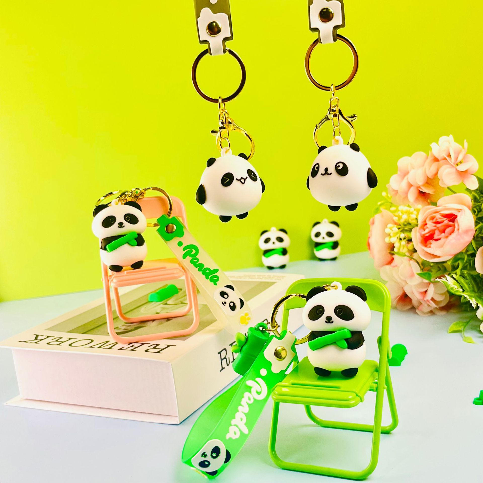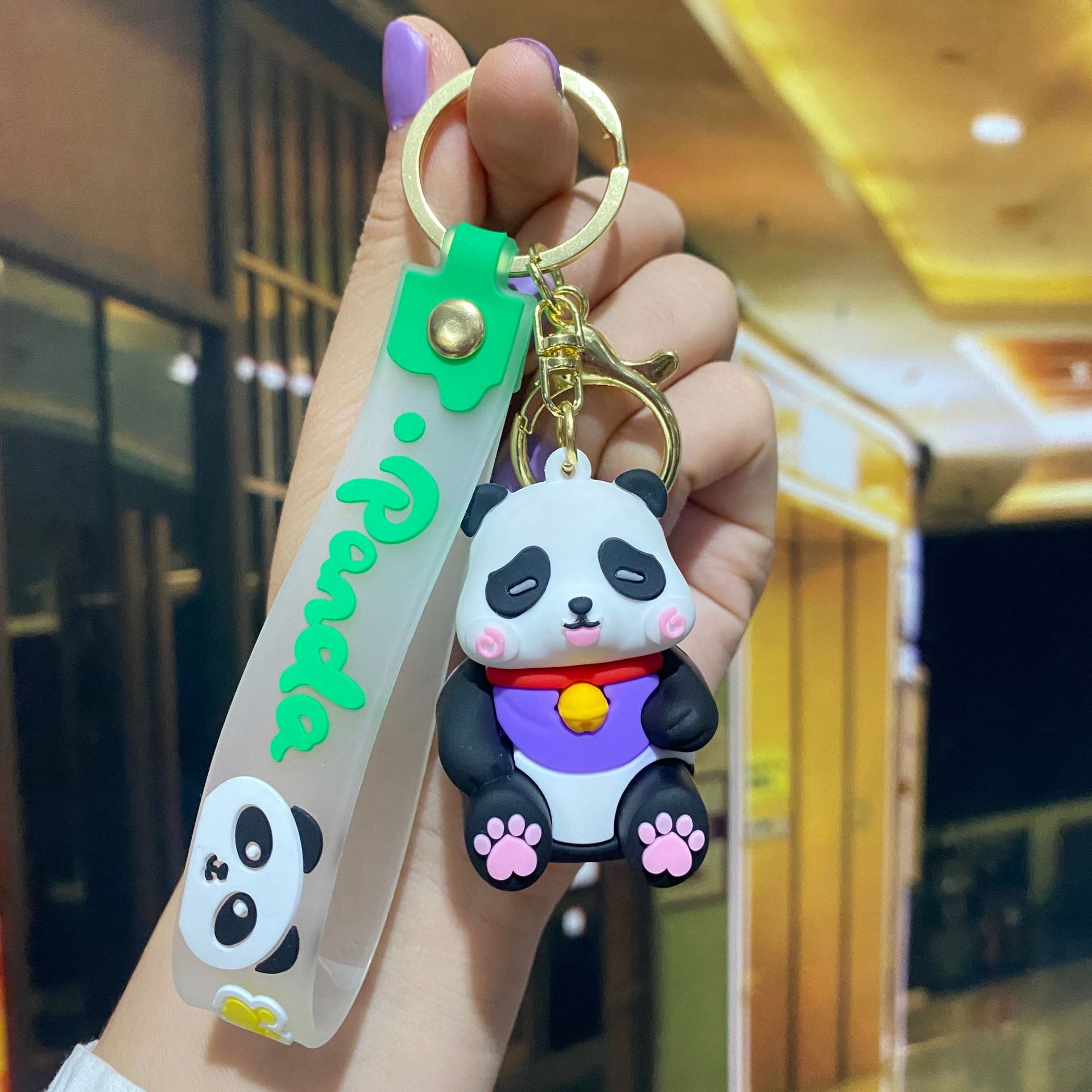 창조적 인 대나무 팬더 키 체인 만화 커플 귀여운 팬더 펜던트 버클 가방 액세서리 작은 선물 도매