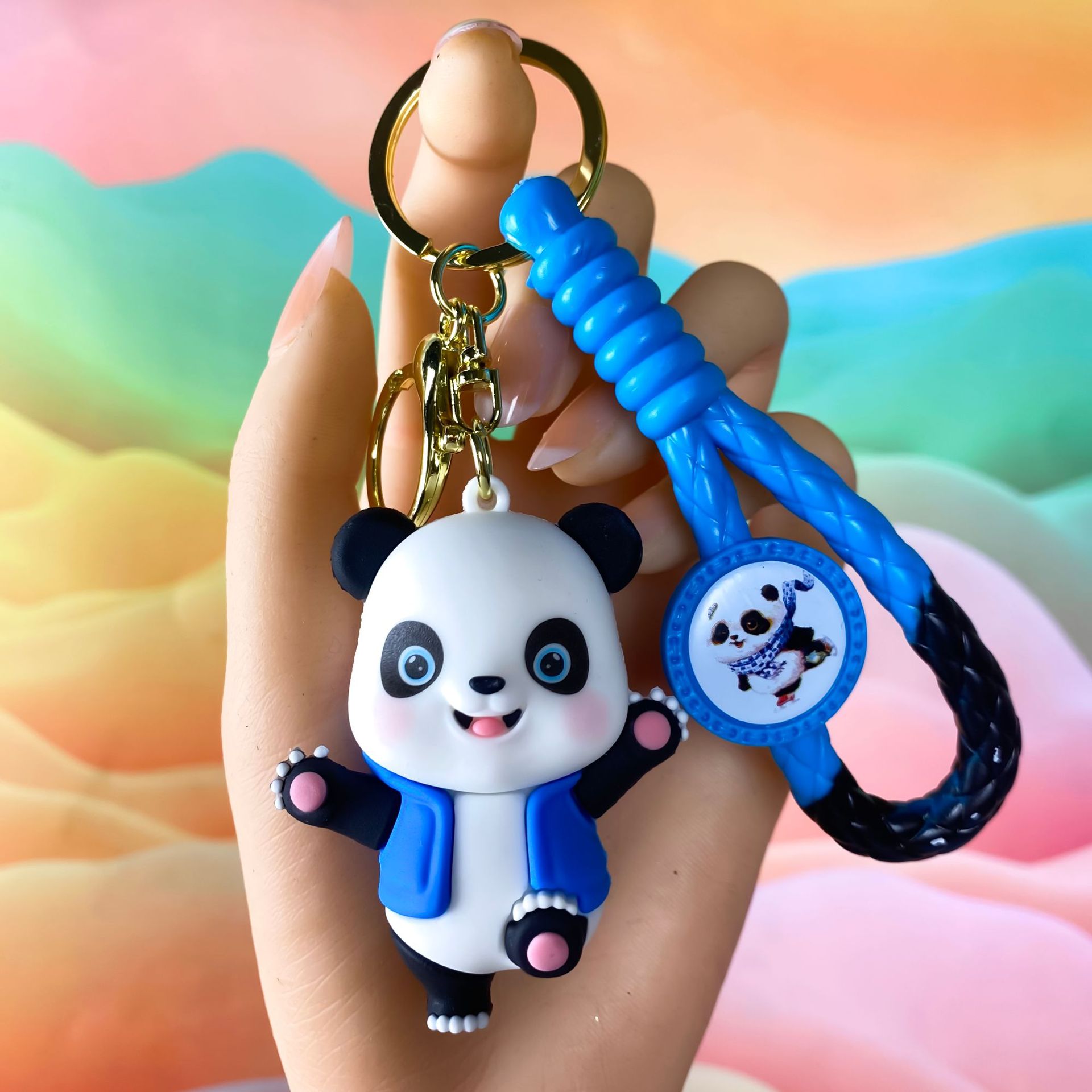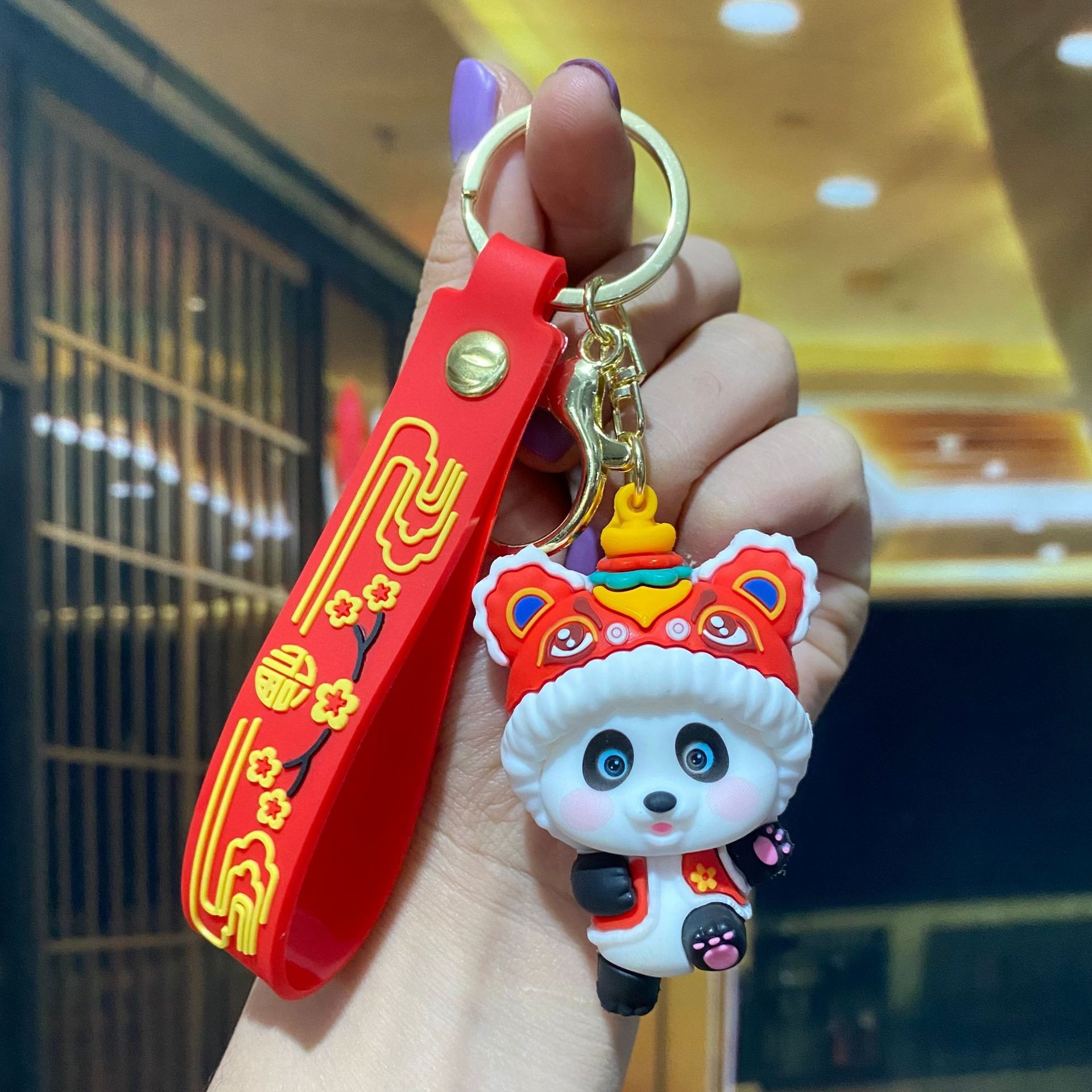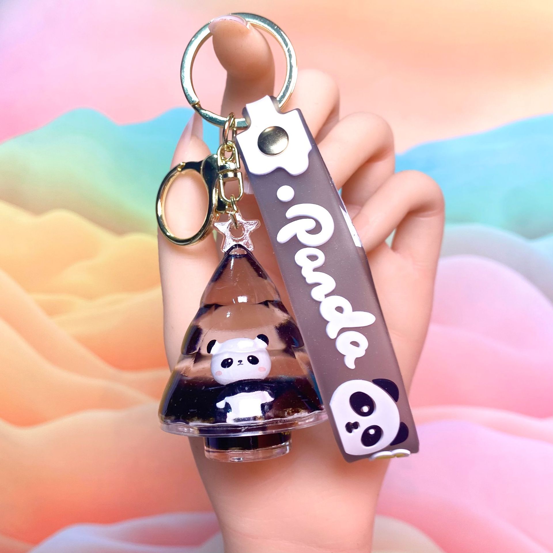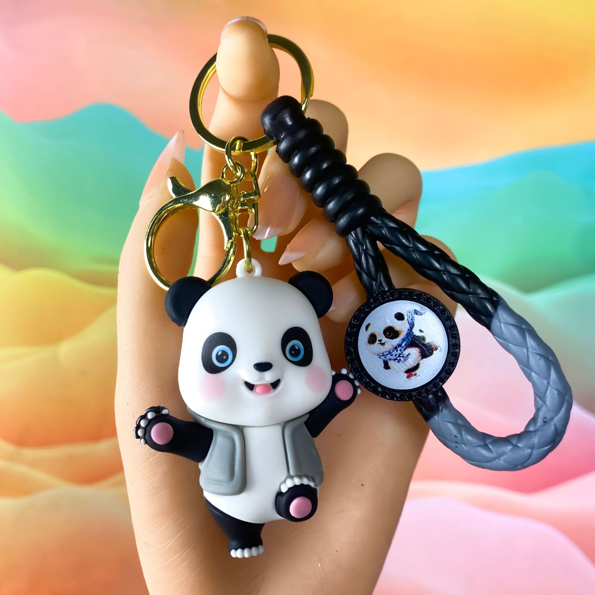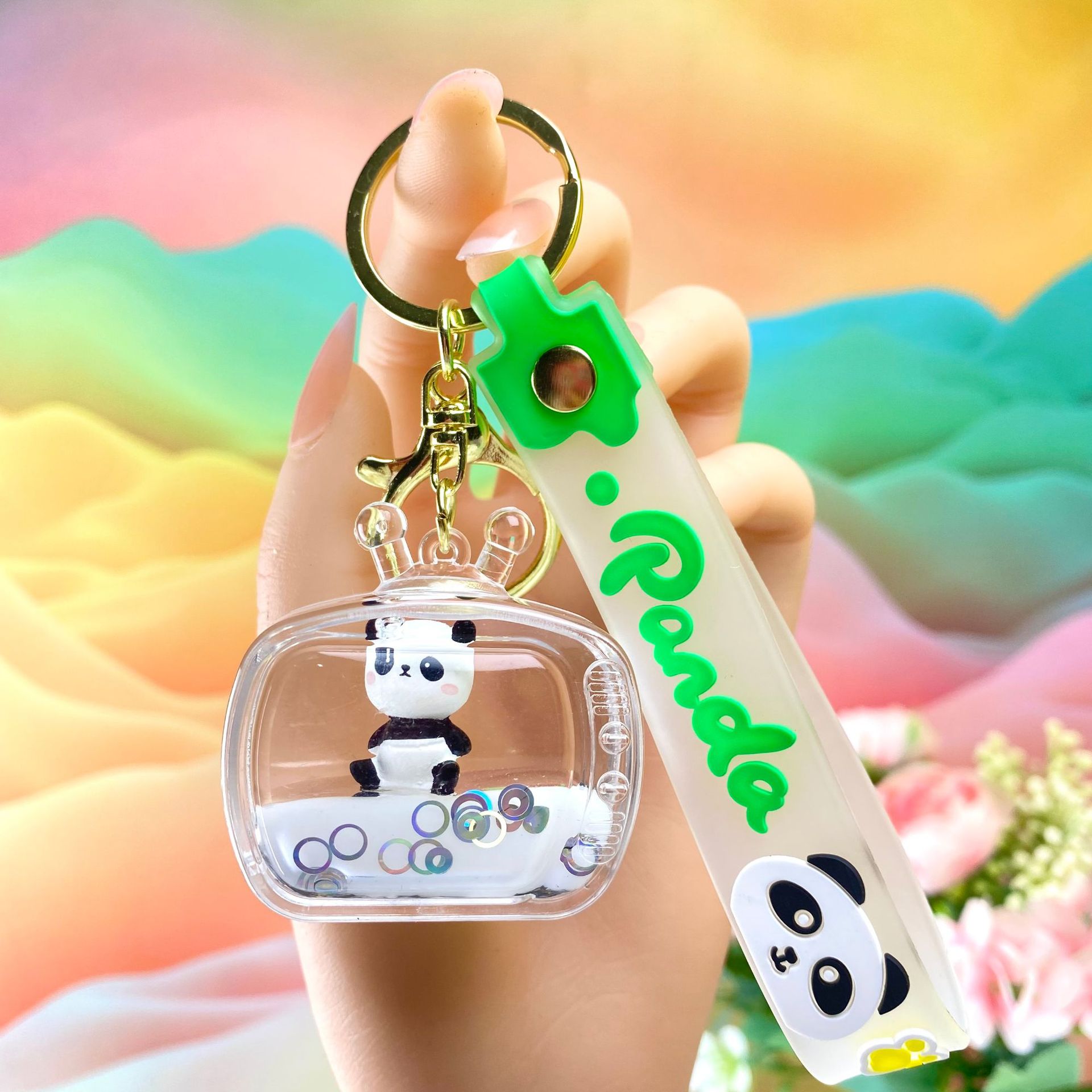 창조적 인 대나무 팬더 키 체인 만화 커플 귀여운 팬더 펜던트 버클 가방 액세서리 작은 선물 도매
