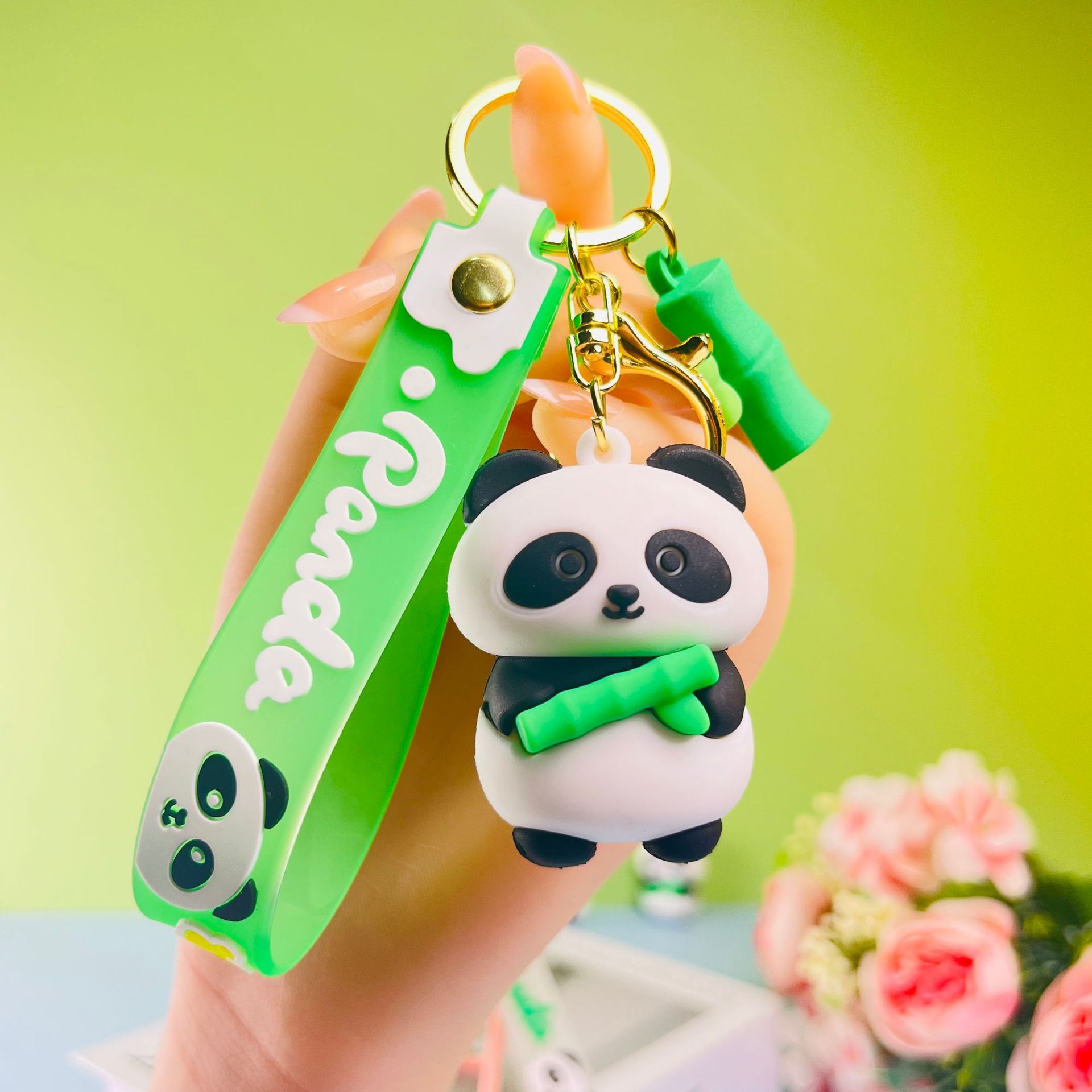 창조적 인 대나무 팬더 키 체인 만화 커플 귀여운 팬더 펜던트 버클 가방 액세서리 작은 선물 도매스토어 가기