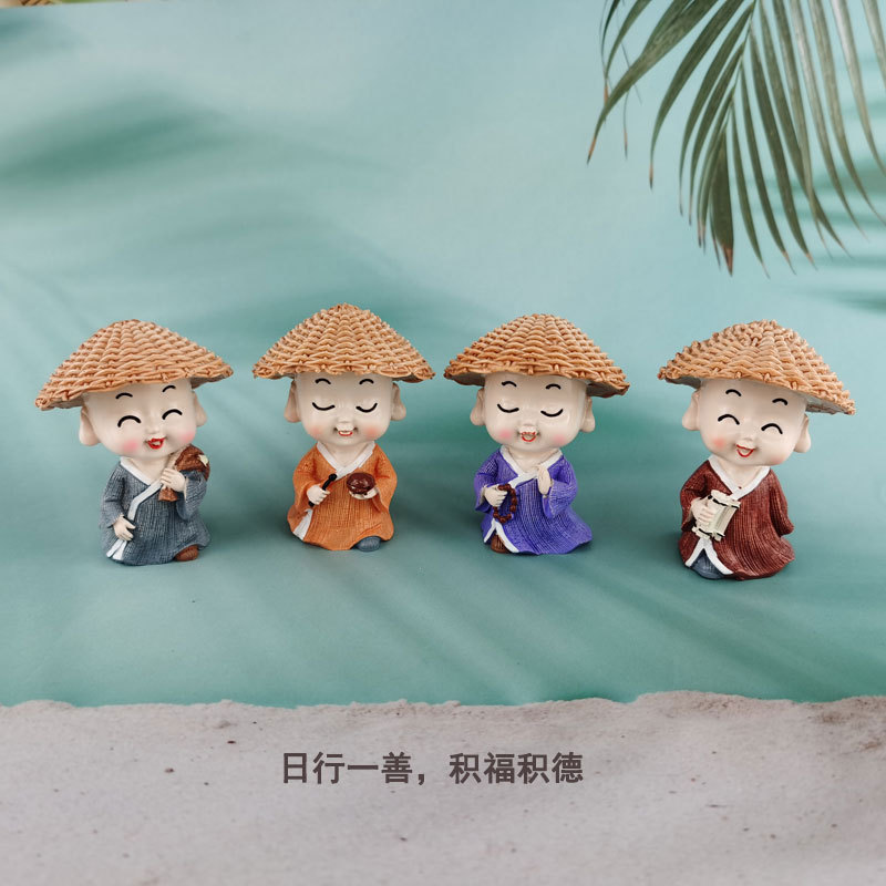 걷는 강과 호수 수도사 자동차 장식품 원예 장식품 분재 장식 공예 밀짚 모자 수도사스토어 가기