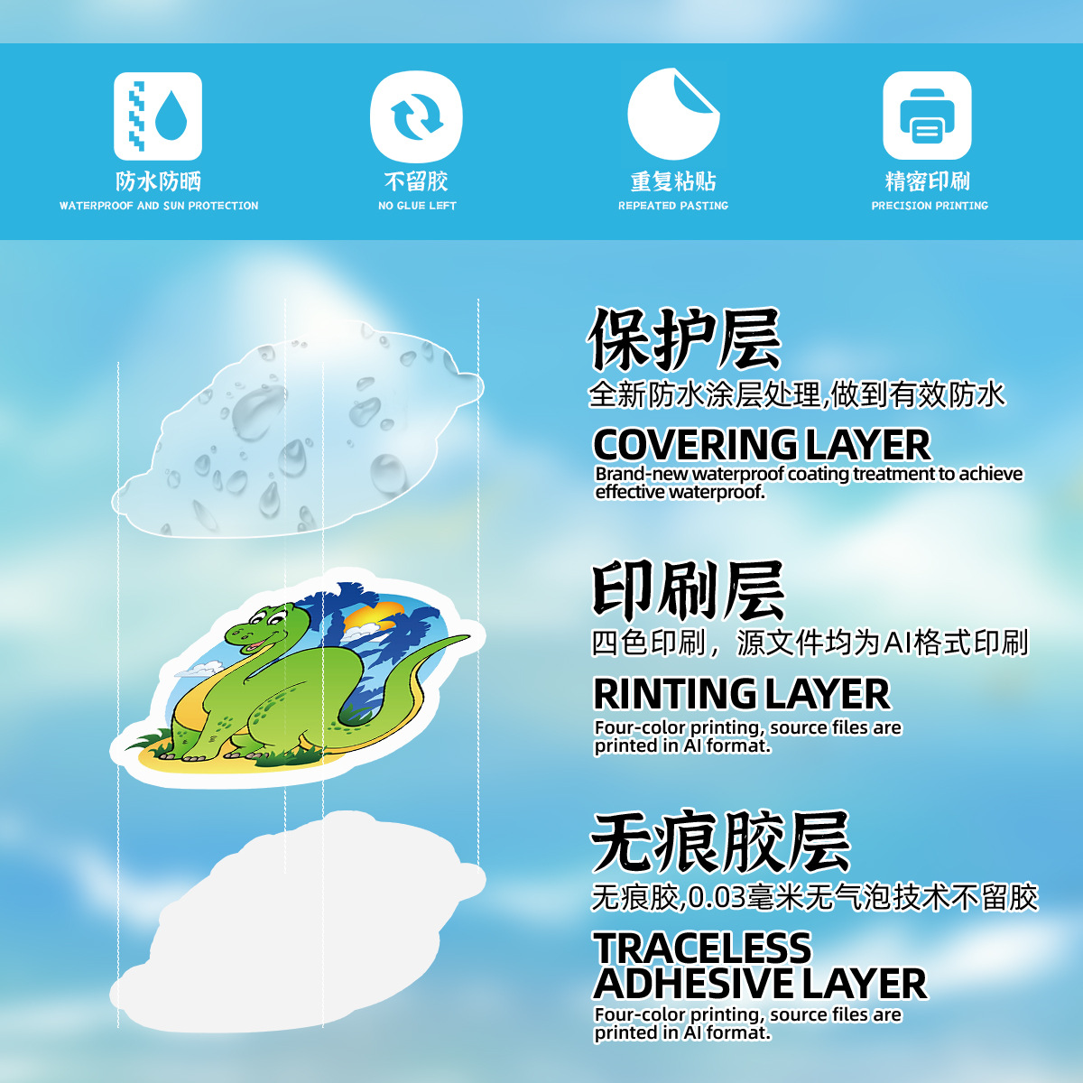 다양한 국경 비 침해 공룡 스티커 귀여운 어린이 만화 스티커 가방 방수 창조적 인 DIY 스티커