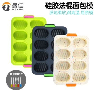 加厚8孔硅胶蛋糕模双色8格面包法棍模马芬杯耐高温不粘烘焙模现货¥13.5