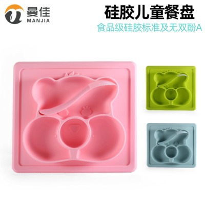 现货硅胶儿童餐盘防滑一体分格易清洗带吸盘防摔配勺子北欧色代发¥1.5