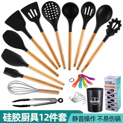 厂家直销 耐高温硅胶木柄厨具12件套 烘焙用具套装不粘锅烹饪¥68