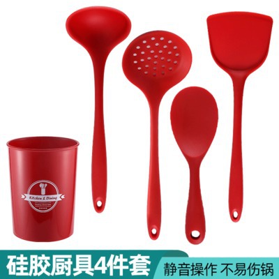 全包硅胶厨具套装锅铲硅胶汤勺不粘锅饭勺捞篱收纳桶耐高温5件套¥3.5