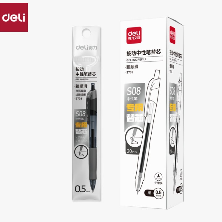 델리 S206 중립 펜 푸시 리필 대용량 K35 빨강 파랑 검정 0.5 불릿 중립 리필