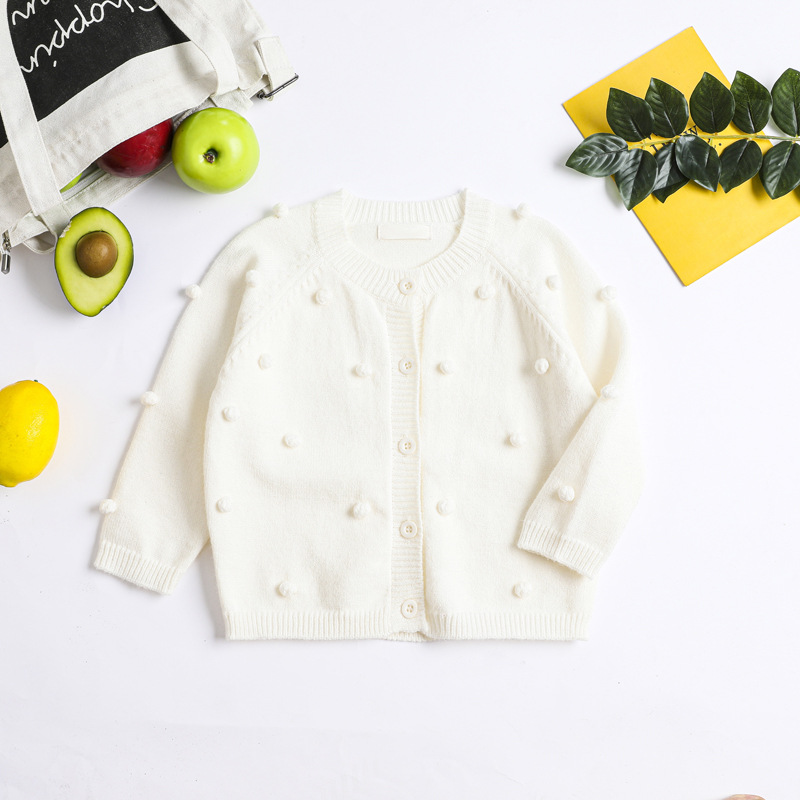 여아용 스웨터 아동복 도매 수제 볼 장식 긴팔 빨간색 아동 스웨터 가디건 유아용 세련된 니트 코트스토어 가기