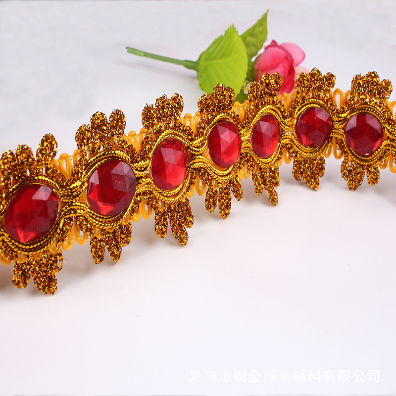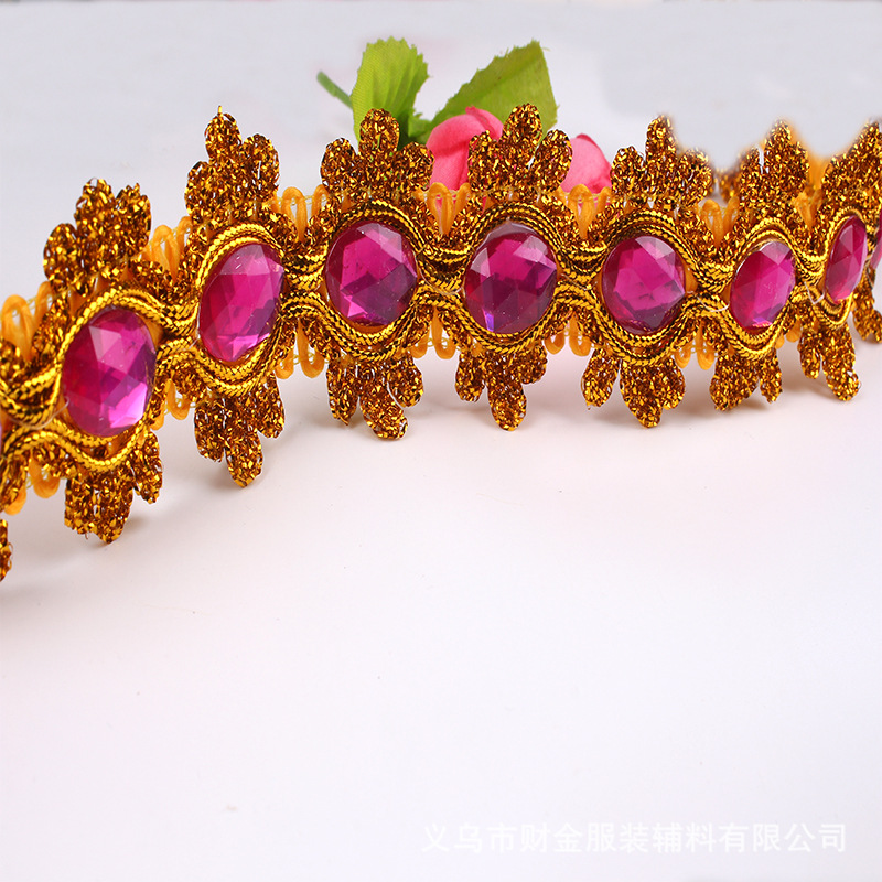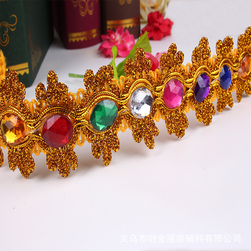 义乌厂家批发金色宝石花边 软饰彩色金银丝花边 服装辅料三朵花边