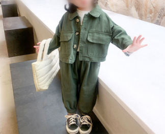 여아 가을 새로운 세트 2023 가을 어린이 서양 스타일 투피스 코트 소년과 소녀 아기 도구 세트