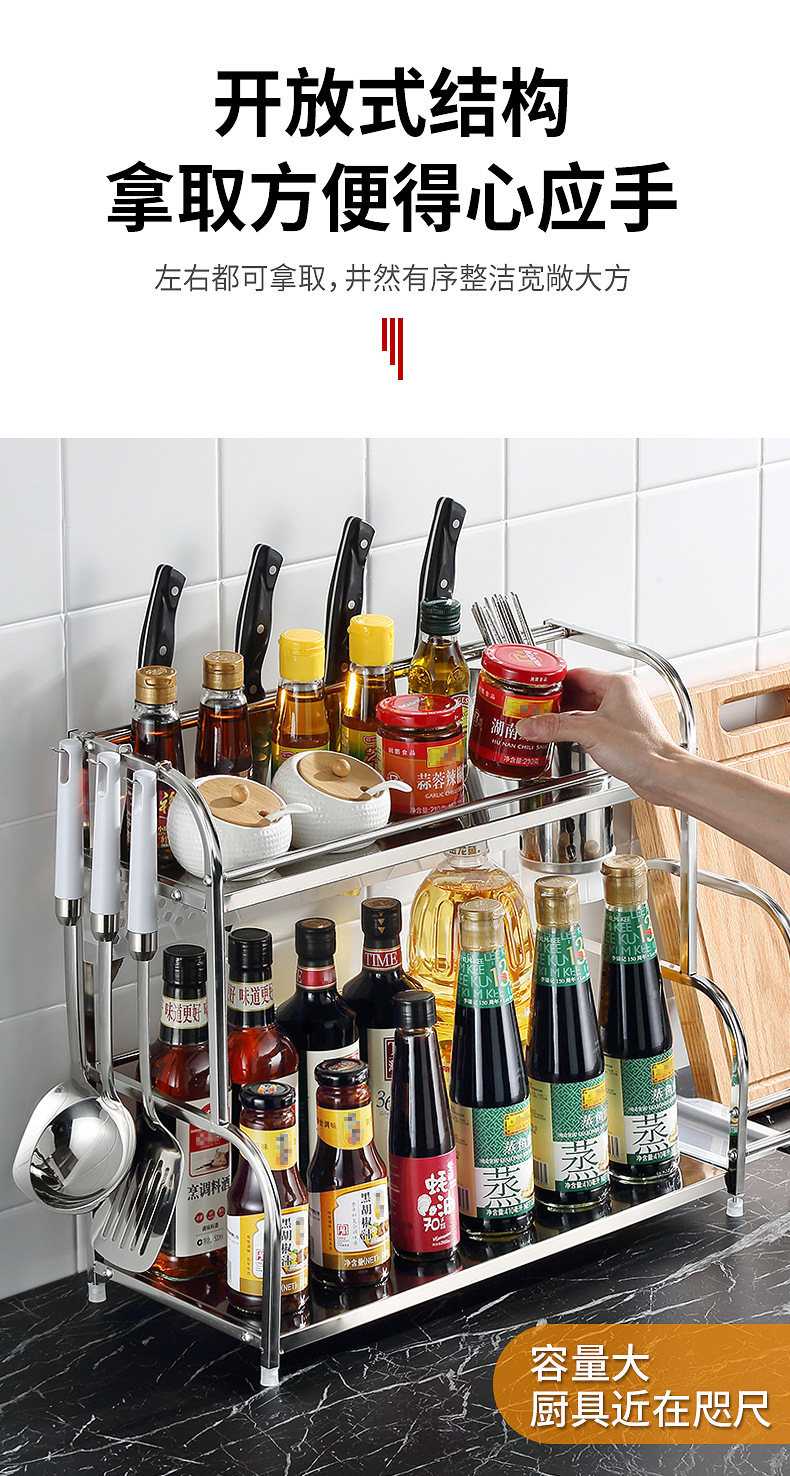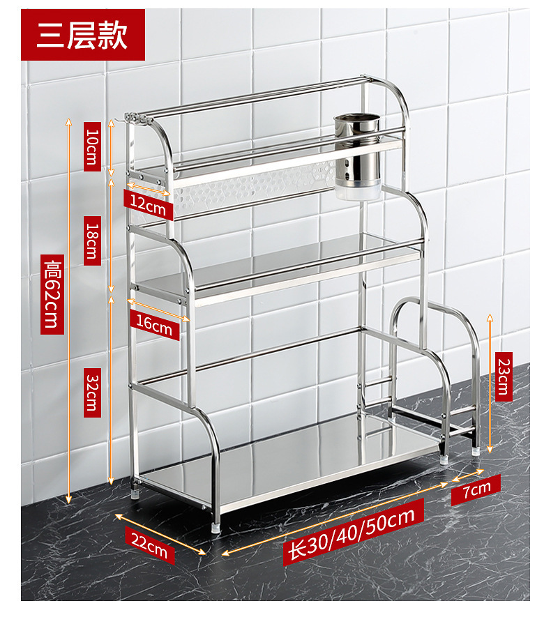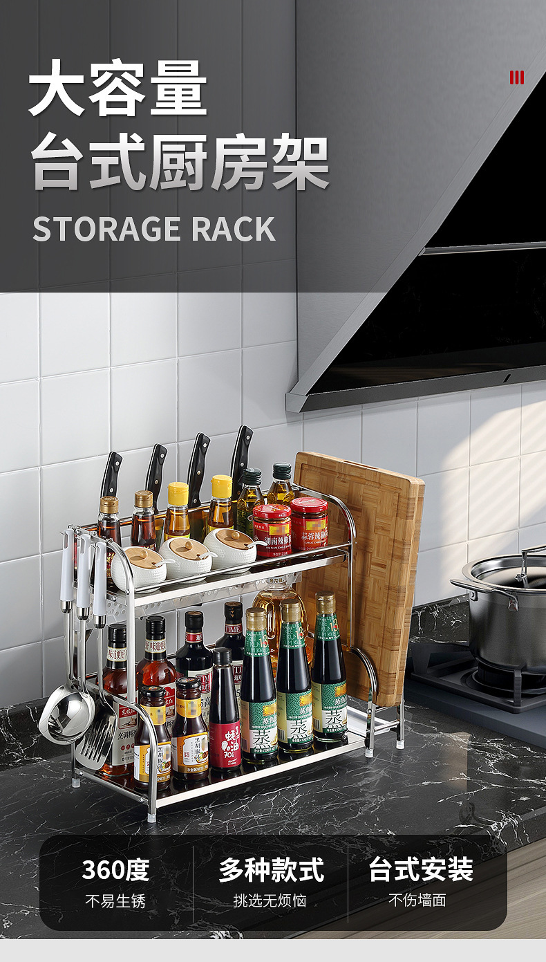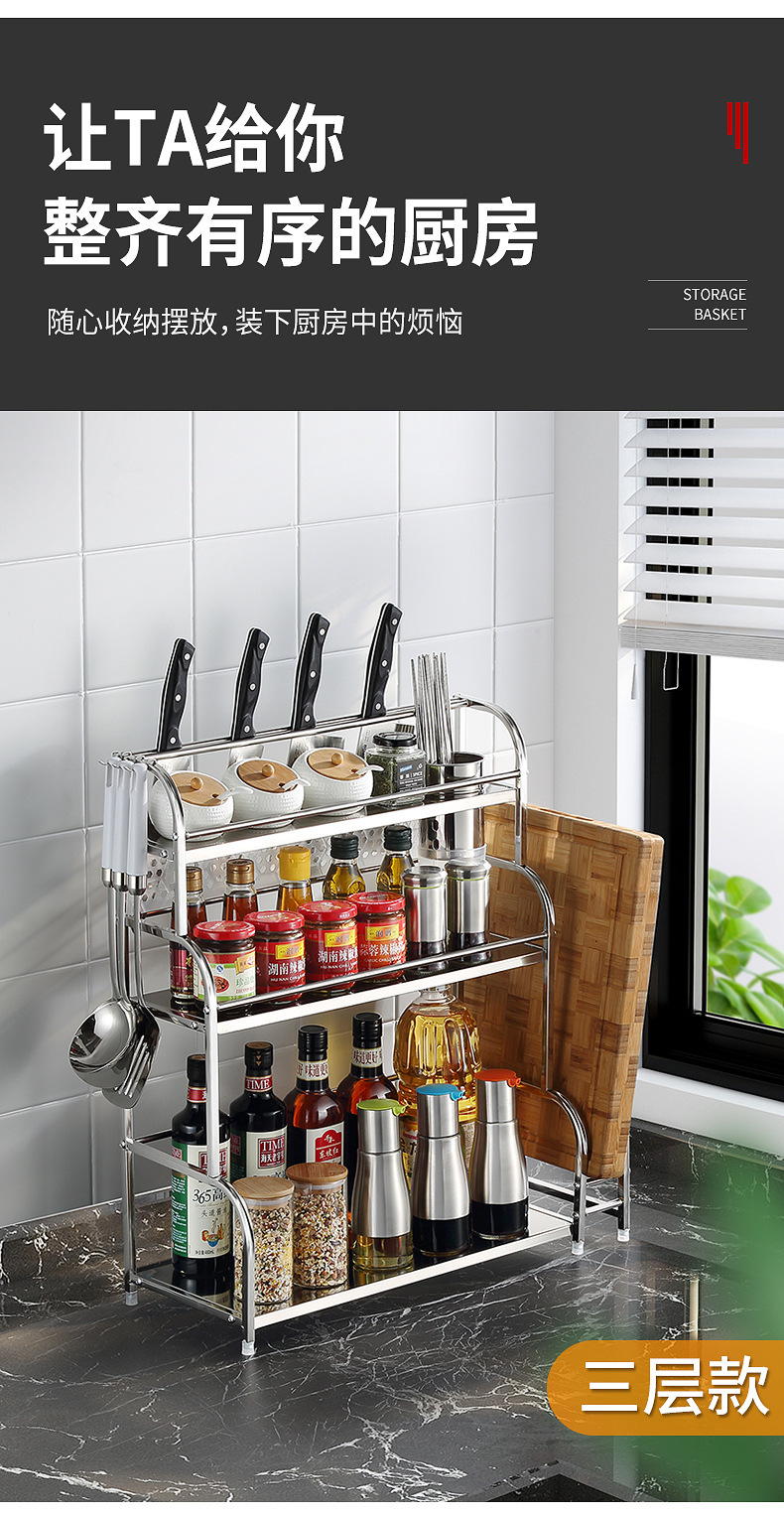 공장 도매 대용량 스테인레스 스틸 데스크탑 주방 랙 보관 랙 조미료 랙 다층 주방 보관 랙스토어 가기